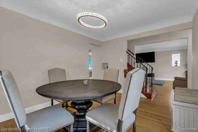 Welcome to this warm and inviting 3-bedroom, 1.5-bathroom home in the heart of Harper Woods, offering over 1,400 square feet of thoughtfully designed living space in the sought-after Grosse Pointe School District. Enjoy the charm of gleaming hardwood floors throughout, a spacious living room perfect for relaxing or entertaining, and a large formal dining room ideal for hosting friends and family. The kitchen features a farmhouse sink, updated finishes, and easy access to the main living areas. One of the three bedrooms is conveniently located on the main floor, offering flexibility as a guest suite, home office, or cozy den. Upstairs, you’ll find two more generously sized bedrooms with walk-in closets, and a full bathroom. The home also features a partially finished basement, perfect for a rec room, workout space, or additional storage. Outside, enjoy a spacious backyard—great for entertaining, gardening, or play—and a 1-car garage for added convenience. Located just minutes from major freeways, shopping, and dining, this home blends classic character with modern updates in a peaceful, well-established neighborhood. Don’t miss this move-in-ready gem—schedule your private tour today!
