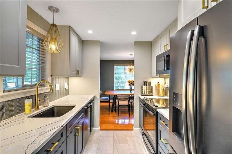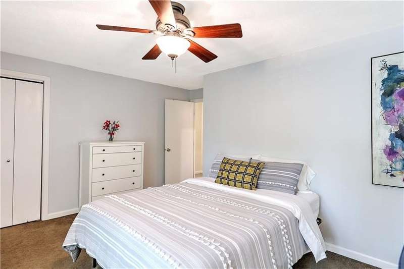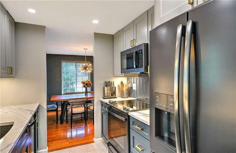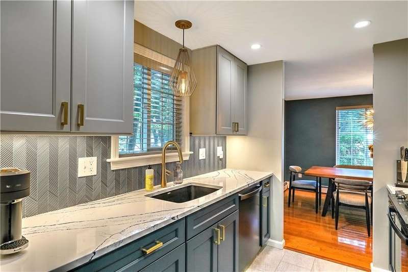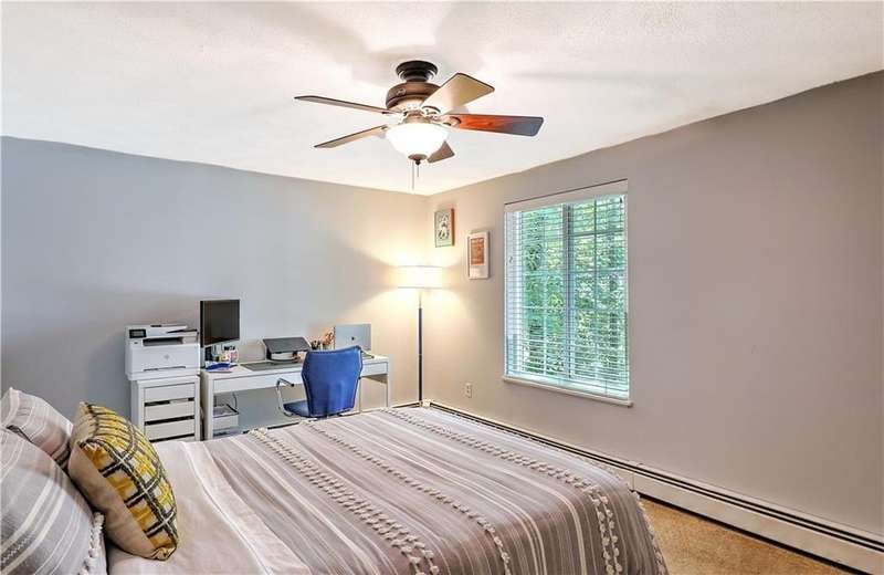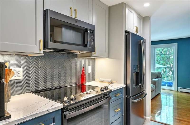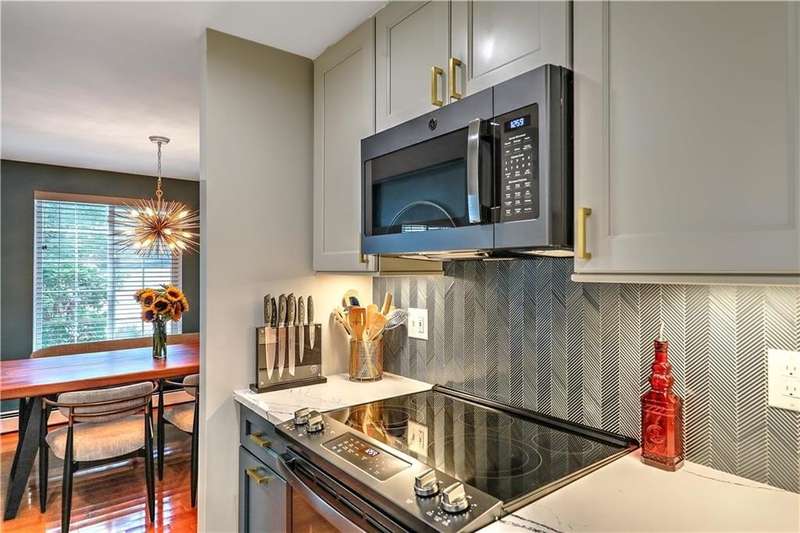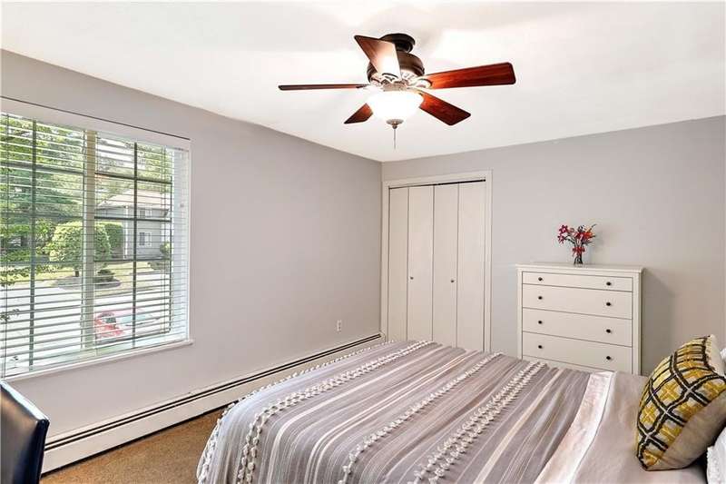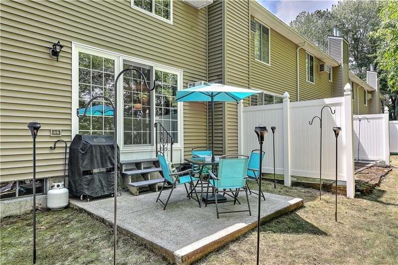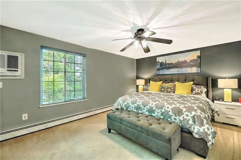 This inviting end-unit, light filled townhouse has everything you have been looking for! With two oversized bedrooms and 1.5 baths, it has been meticulously updated to create a welcoming space. The newly remodeled kitchen stands out with black stainless steel appliances - including a refrigerator, microwave, dishwasher, garbage disposal, oven with built-in air fryer along with quartz countertops and under-cabinet lighting. The main bathroom was also renovated and features a deep soaking tub and expansive vanity. Additional highlights include two wall-unit air conditioners, generous storage throughout, and a full basement with washer and dryer. Outside, enjoy your own private patio in the backyard. Two assigned parking spaces and ample visitor parking. Water, sewer, snow removal, grounds maintenance and trash removal are included in rent, tenant pays gas and electric. With recent upgrades throughout, this home is ready to enjoy from day one!