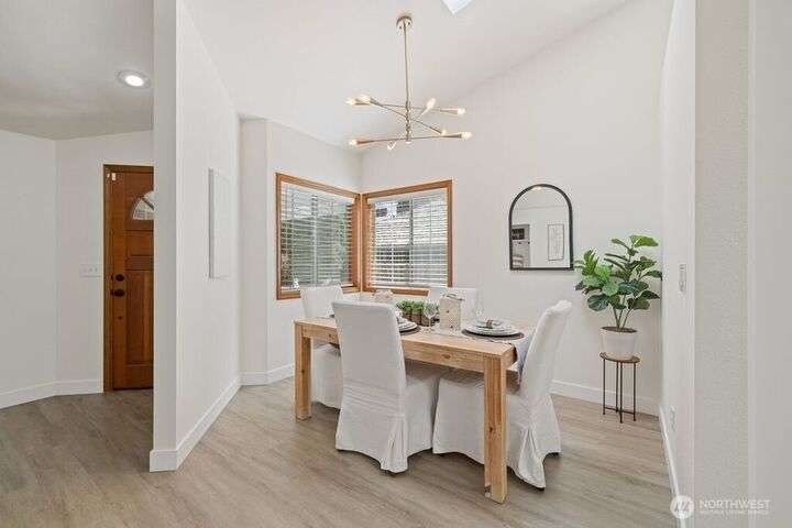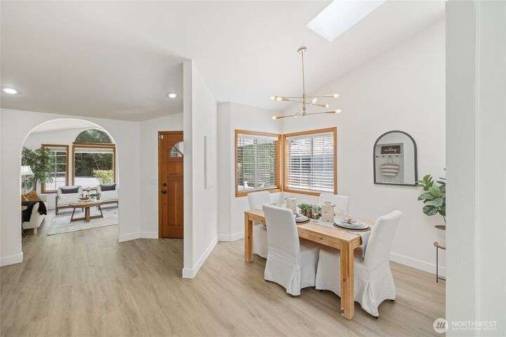 This darling, completely updated rambler located in highly desirable Sunset Trace sits in a lovely col de sac surrounded by nature & walking trails. A brand new beautiful kitchen is the heart of the home with a cozy family room and dining room on each side making for an excellent flowing floor plan! 3 nice sized bedrooms, plus an extra room for a home office or gym makes this one level living perfect for anyone! Outside you will find raised garden beds, a covered patio, a wonderful outbuilding that could be used as another office, or amazing shed, or craft room? Use your imagination to make it your own. Fresh paint, new vinyl plank flooring and a brand new gas furnace make this the turnkey home you have been looking for.