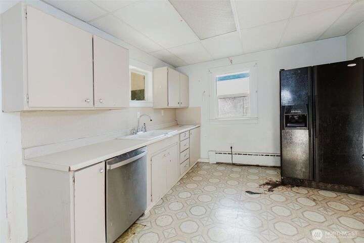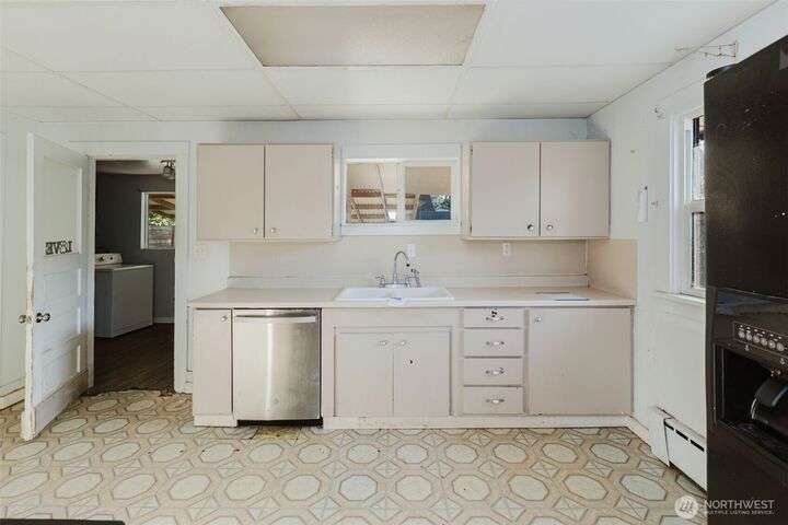 Opportunity knocks! This 2BR/1BA home is ready for your vision. Step into the cozy living room w/ built-ins, and enjoy the oversized laundry/mudroom that could possibly double for a home office. The full unfinished basement provides 776 additional square feet...Perfect for storage, projects, or creating future living space. Outside, the fully fenced yard offers room to play or garden, while the covered back patio extends your living area outdoors—ideal for year-round BBQs and gatherings. A detached 2-car garage gives you plenty of space for parking, projects, or that future shop you’ve been dreaming about. Conveniently located near PSNS and Hwy 3. HUD Home, sold “AS IS.” Bring your tools, ideas, and some elbow grease to make it your own