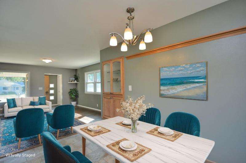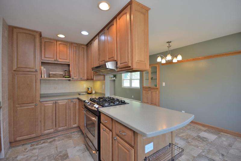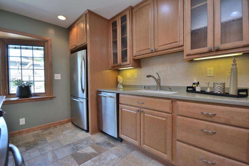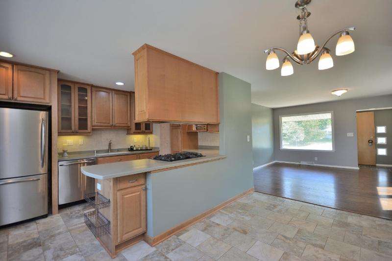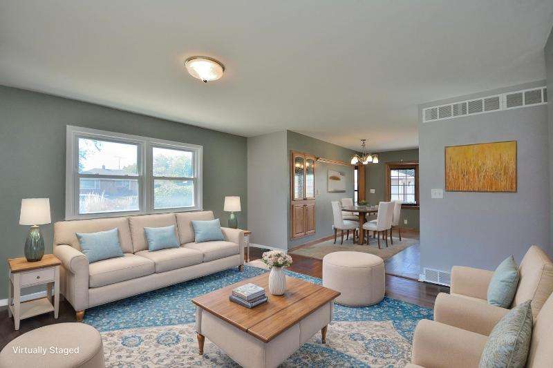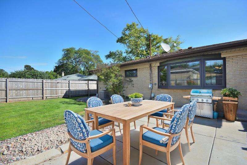 This all brick beauty situated on a corner lot is the perfect place to call home! Features include an awesome custom kitchen with recessed lighting, hard surface countertops, SS appliances, built-in pantry, GE profile gas stove and newer bay window with built-in blinds and screens overlooking your fenced yard with lush landscape and patio. Primary BR has ensuite half bath with built-in clothes hamper for your convenience. Finished lower level with dry bar and glass block windows is perfect for a home office, playroom or entertainment. Maintenance free 2.5 car garage with additional outside parking slab. Conveniently located within minutes of shopping, restaurants, parks and freeways.