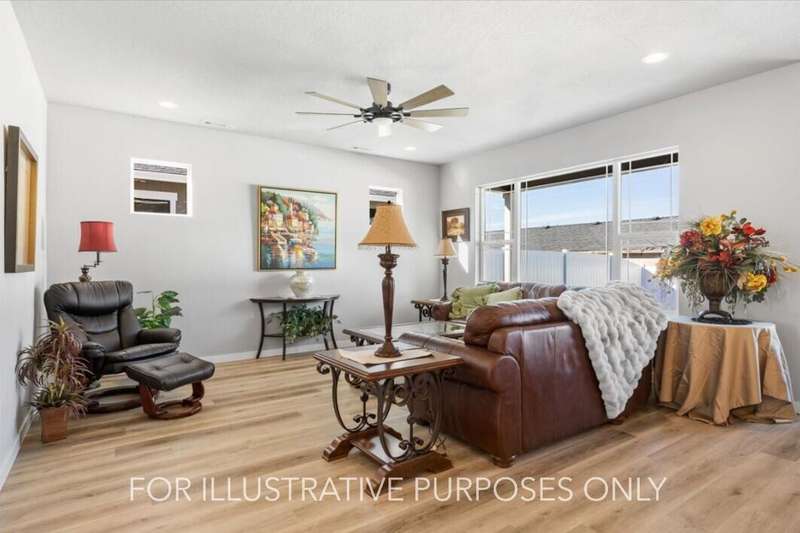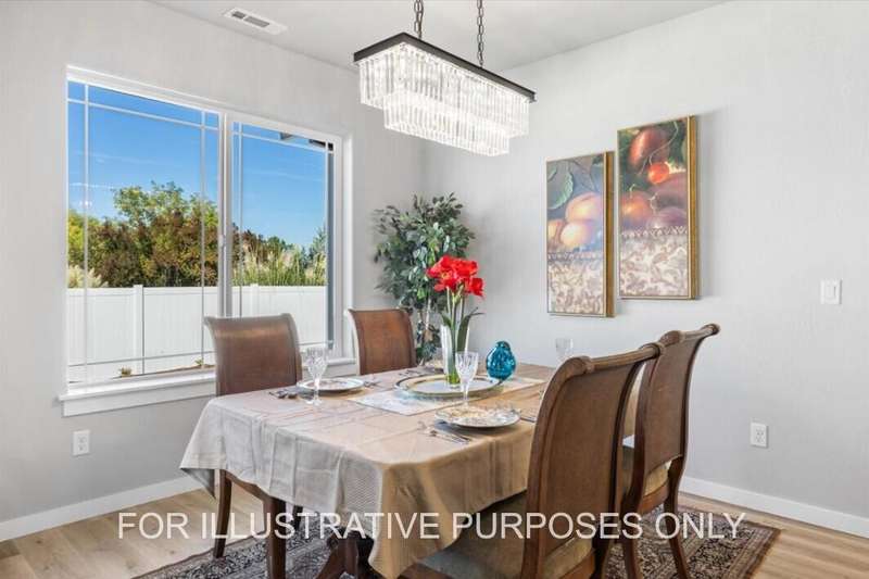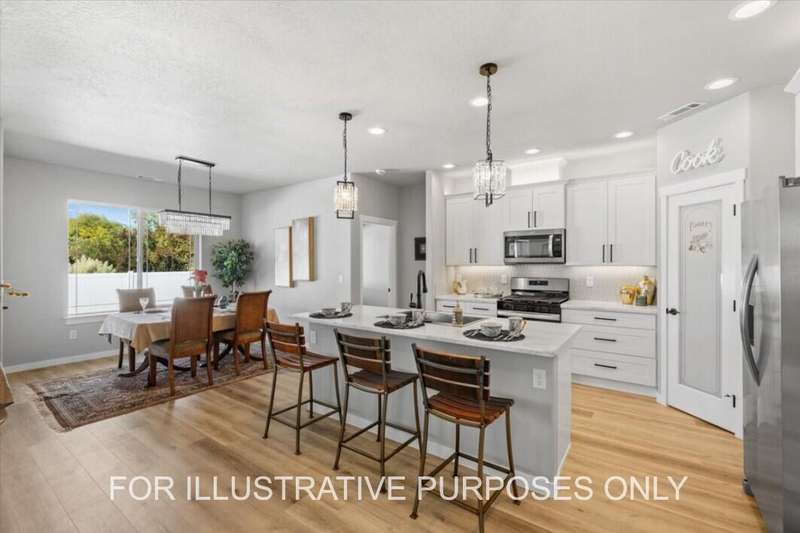 Introducing brand new 2025 high-end construction - built with pride by Bob Fellows Construction, a trusted builder with 30+ years of excellence in our valley. This remarkable property boasts too many upgrades to list. Step inside & enjoy 9ft ceilings throughout. Split bedroom floor plan offers privacy, w/2 bedrooms & 1 bathroom on one side & a luxurious primary suite w/incredible bathroom on the other. Upgraded vinyl plank flooring throughout the entry, kitchen, living room, hallways, & dining area, complimented by tile in the bathrooms & laundry room, & carpet in bedrooms. The kitchen is a chef's dream, featuring quartzite countertops, huge island, custom cabinets w/soft close, SS whirlpool appliances w/a natural gas oven, upgraded lighting, including under & over cabinet lighting. The primary suite is a sanctuary w/coffered ceilings & a spa-like bathroom w/gorgeous tile, walk-in tile shower, walk-in closet, extra cabinets, +more. Fully fenced & landscaped w/2-car garage. Must Tour!