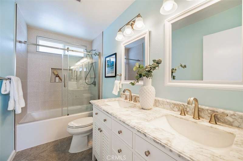 Welcome to resort-style living just three miles from the beach and downtown at the distinguished Huntington Village Estates. This exceptional property features a spacious primary suite with vaulted ceilings and is complete with a walk-in closet, walk-in shower, 72-inch double vanity, a dedicated Jacuzzi brand tub, and a private toilet room. The upgraded kitchen offers a breakfast bar, beveled granite slab countertops, solid wood cabinetry, newer stainless steel appliances, double-oven, trash compactor and a large pantry equipped with built-in lighting. All bathrooms have been enhanced with stone countertops, new cabinets, designer mirrors, and upgraded lighting. Additional interior enhancements include a heat pump (2023) for energy efficient heating and cooling, plantation shutters, ceiling fans with lighting in all bedrooms, and neutral paint throughout. The formal dining room boasts a vaulted ceiling with newer skylights and is adjacent to a large living room featuring a bay window with seating. An indoor laundry area with generous storage and a wall-to-wall countertop adds further convenience. All ceilings have been professionally refinished, eliminating popcorn texture in favor of expert plasterwork, fresh paint, and first floor ceilings have been upgraded with recessed, dimmable lighting. The 2-car garage features a heavy duty industrial storage rack, plenty of space for additional shelving and even space for a garage refrigerator! The concrete driveway also accommodates parking for two cars. The exterior was professionally painted in 2024. In addition to the premium turf and landscaping, the yard also offers a spacious outdoor entertaining area, perfect for grilling or dining. A decorative stone wall, matching curbside mailbox, and wrought iron front fence with locking entry gate enhance security and curb appeal. Homeowners enjoy association amenities such as a pool, furnished clubhouse (available at no additional rental cost), greenbelt with walking path, two tennis courts, and security patrol. This residence offers a highly private and quiet location. Terry Park is adjacent to the neighborhood, and residents benefit from easy access to local parks, craft breweries, a variety of restaurants and shopping, as well as Central Park and the library—all just a short walk away. Enjoy coastal living at its best at the Huntington Village Estates.