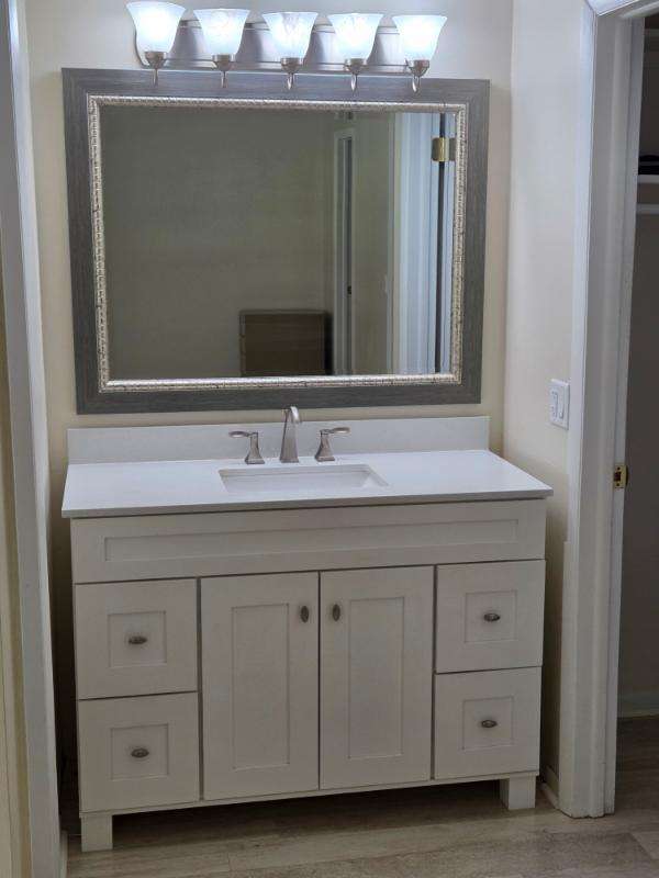Location! Location! - Beautiful updated condo in very well maintained Pointe Overlook 55+ community. Hurricane windows in kitchen and LR. Tile in LR/DR and both baths; Pergo in the BR and closets. Updates include beautiful, tall, ceiling high cabinets in the kitchen with pull-out drawers in all base cabinets and pantry; new dishwasher, newer range, refrigerator and microwave; quartz countertops and backsplash; new vanity, sink, mirror, cabinet, lighting and toilet in both baths; two walk-in closets with motion detector lighting. Newer HVAC and hot water tank. New wood interior doors. New light fixtures throughout. Enclosed lanai with jalousie windows and door. Exterior overhangs at front and rear that double as hurricane protection. New roof, exterior paint, and exterior lighting.