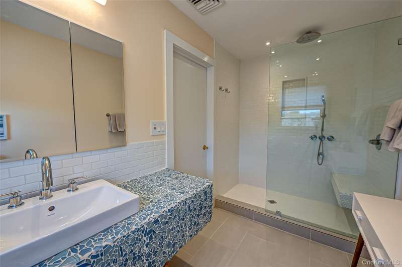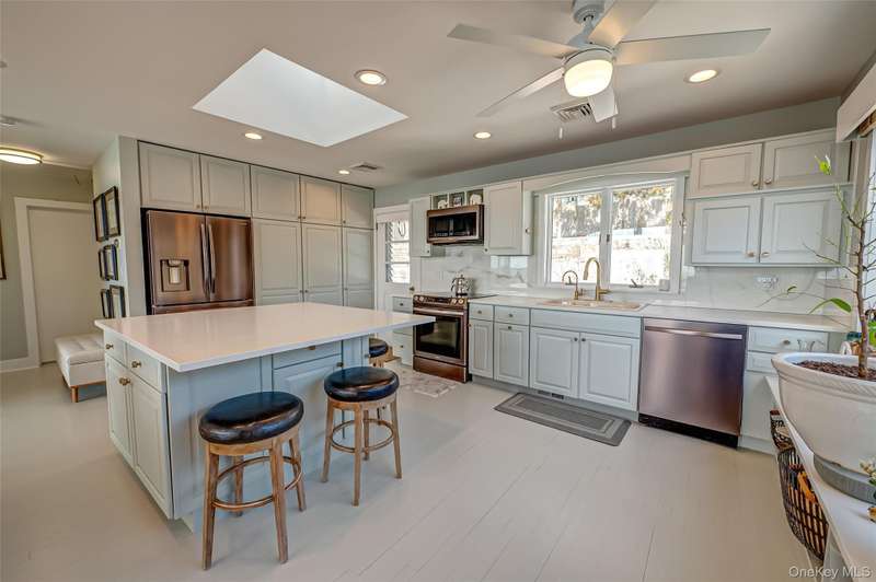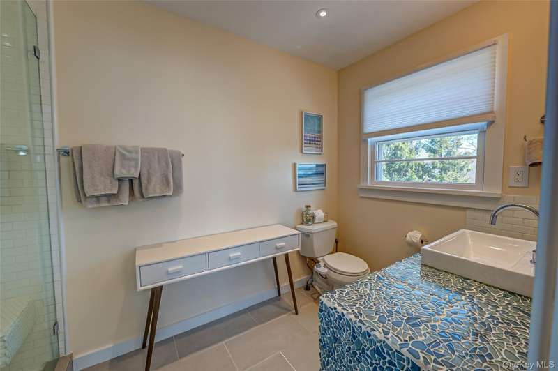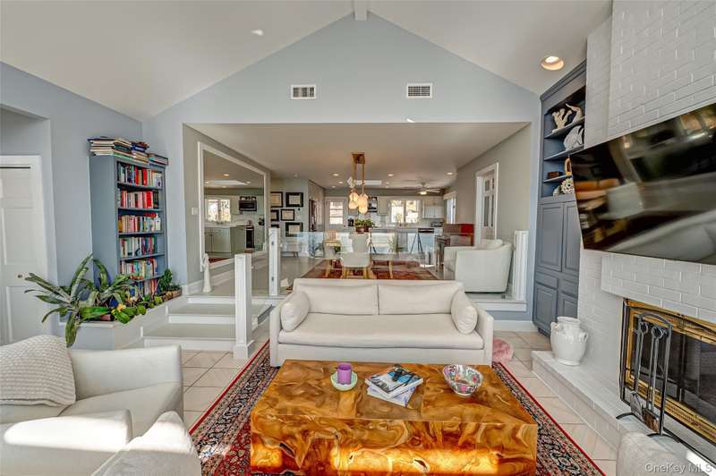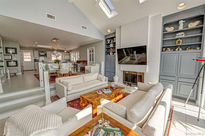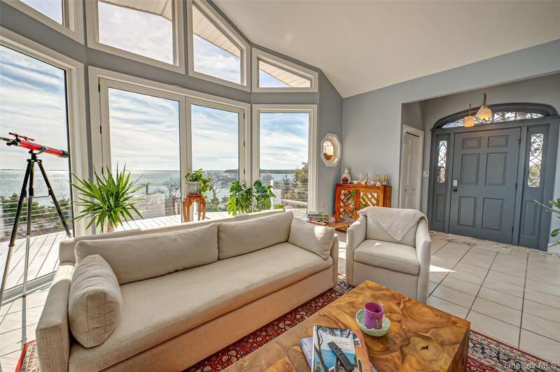 Experience waterfront living at its finest in this Hampton Bays retreat, perfectly positioned to capture sweeping views of Shinnecock Bay. Bathed in natural light, the home features an airy open floor plan with 9-foot glass doors that lead to a spacious deck overlooking truly breathtaking vistas. The living room's vaulted ceilings and fireplace create a warm, inviting atmosphere, while the formal dining room and generous kitchen-complete with a 6-foot island-offer ideal spaces for entertaining. The home includes four comfortable bedrooms, highlighted by a tranquil primary suite with a full bath and stunning water views. Step outside and enjoy your private oasis: an in-ground pool with a waterfall feature, surrounded by wrap-around Trex decking designed for relaxation and outdoor enjoyment. This is the ultimate escape for those seeking beauty, comfort, and coastal charm.