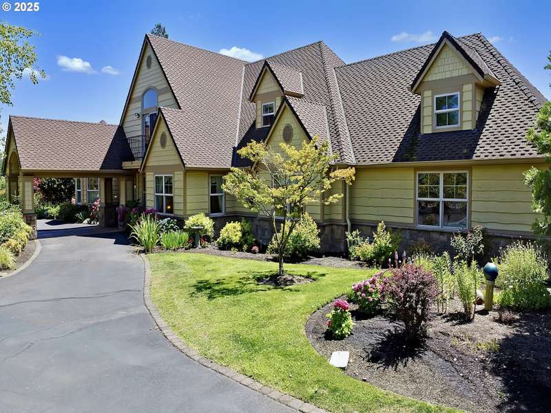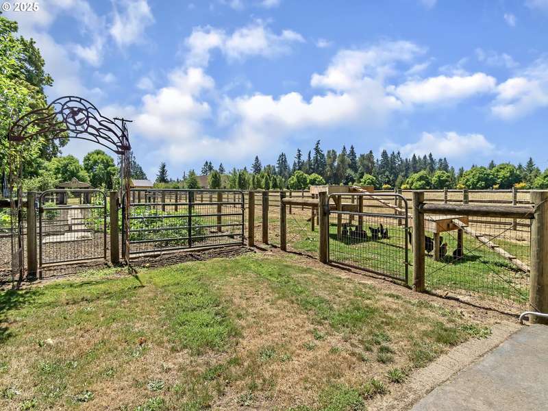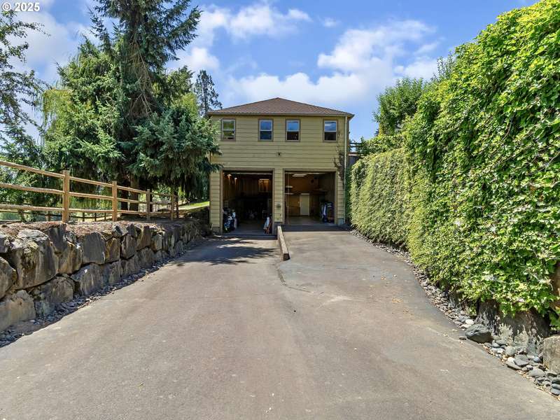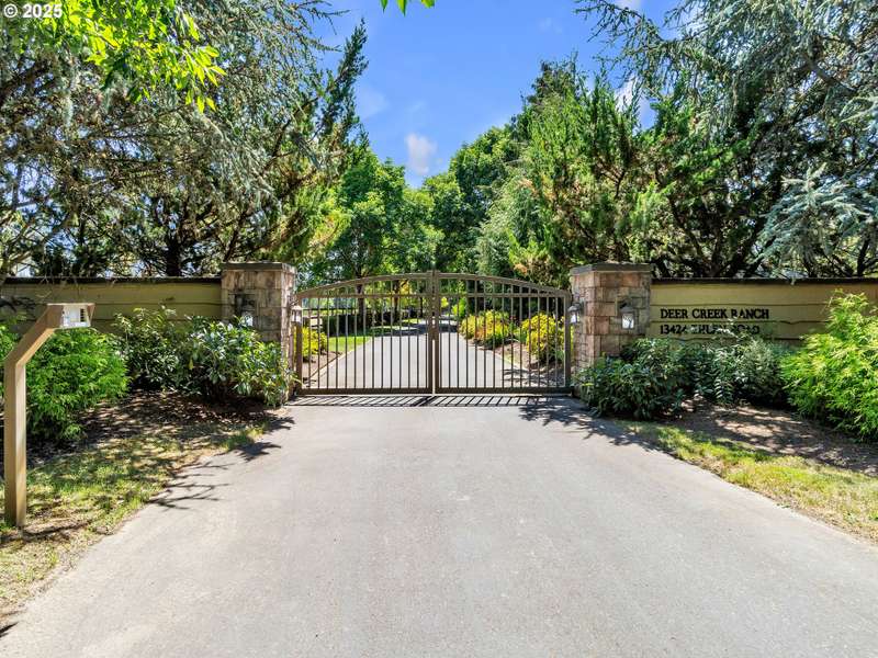 Deer Creek Estate: A rare sanctuary offering main-level living on ~30 pristine acres overlooking Deer Creek. Custom-designed residence with minimal steps, light-filled great room, chef’s kitchen, luxe primary suite, and an in-ground hot tub grotto for all-season soaking. The upper level features guest/caretaker quarters with ample storage. Working estate infrastructure includes an oversized shop with RV bay, heated dog grooming & wash room, office, and loft storage; large barn with hay/tack space; multiple fenced pastures & animal shelters; chicken coop; and the charming original 1920s farmhouse (ideal for studio, office, or ADU, buyer to verify). Manicured, irrigation-supported landscaping maintained by a full-time groundskeeper. Gated, paved private drive for supreme privacy and security, just minutes to I-5 corridor, wine country, and services. A legacy multi-use property ready for animals, hobbies, events, and generational living.