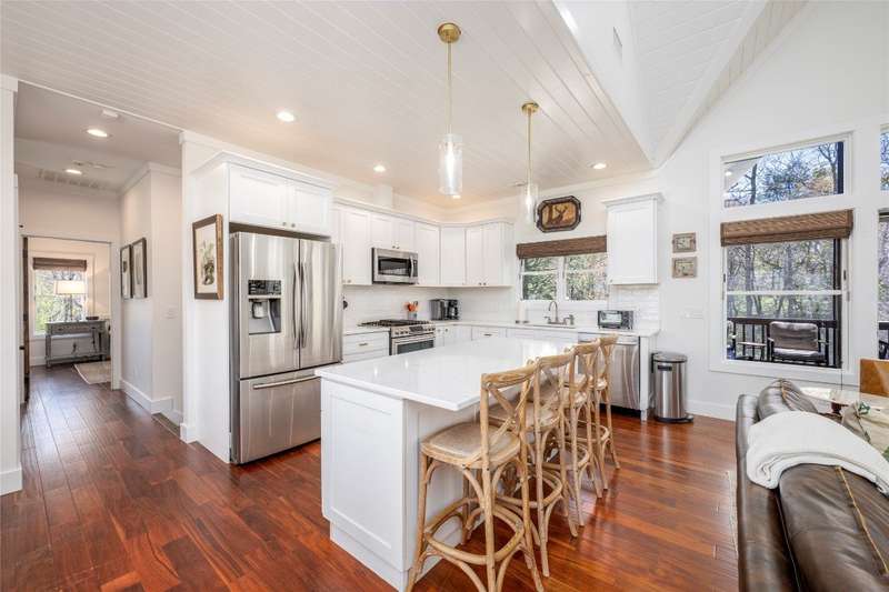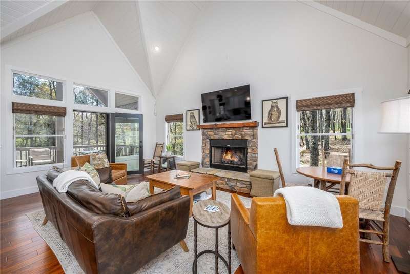 Discover the perfect blend of comfort and mountain living in this meticulously maintained home. Boasting an open floor plan, the main level is ideal for both everyday living and entertaining. The living room features a stone fireplace, perfect for gathering on cool evenings. Step out onto the expansive screened porch or enjoy the nearby fire pit for outdoor relaxation. The main level includes the dining room, kitchen, and laundry room, along with the primary suite, offering convenience and privacy. The lower level enhances the home's functionality with a family room that includes a wet bar, two guest bedrooms, and an additional porch, creating a versatile space suitable for either hosting or quiet retreats. Located in the gated Natures Walk section of Chinquapin, this home is within close proximity to the community clubhouse, which features a fitness center, pickleball courts, a driving range, disc golf, and a dog park. Outdoor enthusiasts will benefit from Chinquapin's 2000 acres of private land, known for its opportunities for hiking, biking, fishing, and canoeing, and nearby Panthertown Valley, which is only a mile away. A short path from the property leads directly to the peaceful Tulip Pond. Whether intended as a year-round residence, seasonal retreat, or rental property, this move-in-ready home allows for an immediate start to enjoy mountain living.