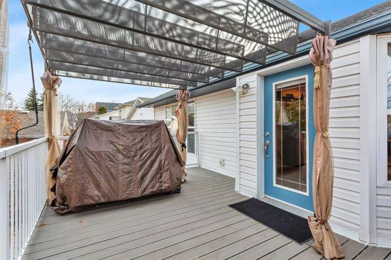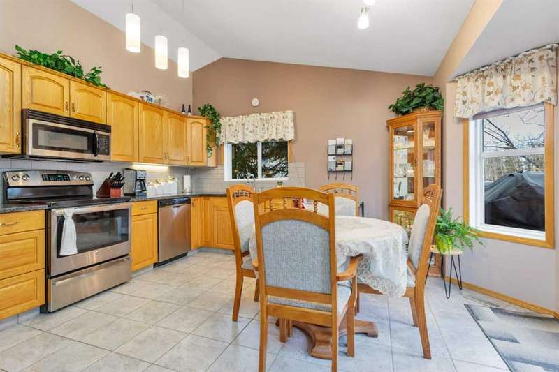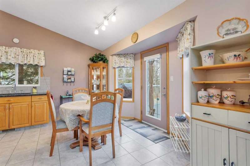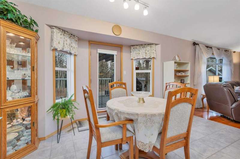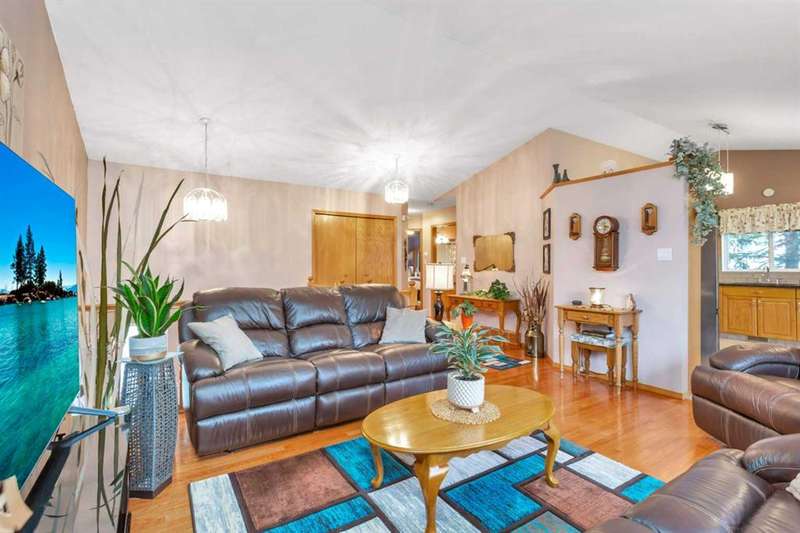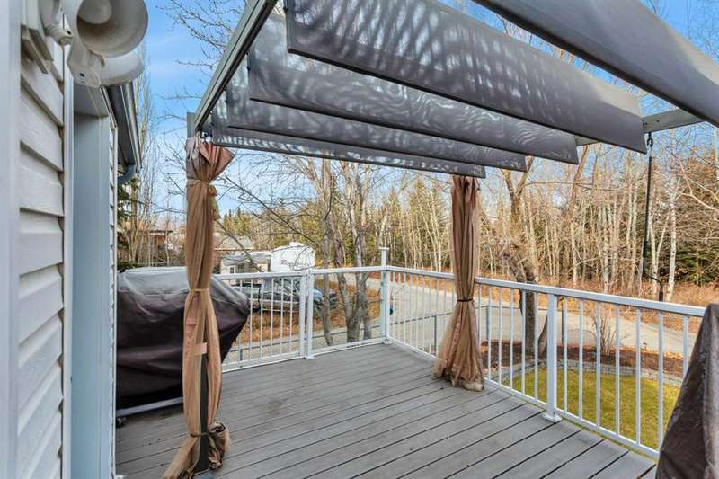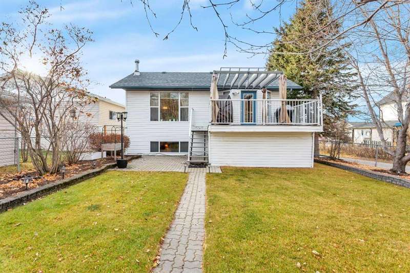 Welcome to the delightful bi-level home at the north end of Rocky Mountain House. This home brings out the cozy everywhere through out the home. Cozy yet open concept style that flows from the Dining room into the Living room and to the front entry all with the overhead vaulted ceiling. Here is a home that has been pristinely kept by still the original owners, non pet, non smoking or children raised in this home. Very well maintained inside and outside the home.. Large vinyl windows through out the main floor and basement level. Main floor has the Primary bedroom with 2 pcs. en-suite, 2 other bedrooms, full sized bathroom, large kitchen- dining combo. Dining and living room offer full view of the back yard with no neighbors behind or on the one side of the home. The Living room with its hardwood floors that flow down the staircase of the front entry.. Basement presents walk out to the garage, 3 pcs. bathroom/laundry room, 1 bedroom, , cozy family room with wood burning insert fireplace, and the ceiling is suspended ceiling. Siding, roof shingles replace 10-12 yrs ago, hot water tank replaced April 2021, all flooring on main floor replaced in 2008. The dining room flows out to a 8' by 14 ft composite deck with a gazebo on it. Truly a home to enjoy. Right by walking path and close to parks.