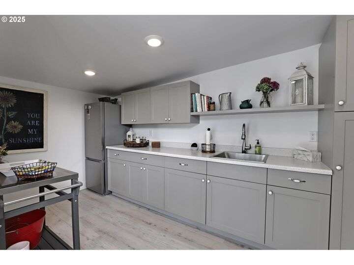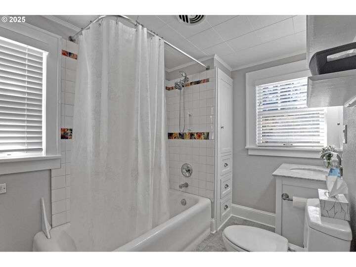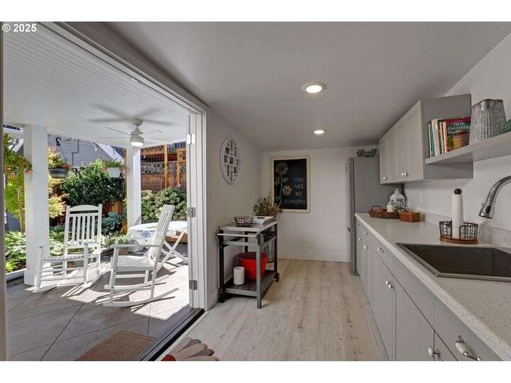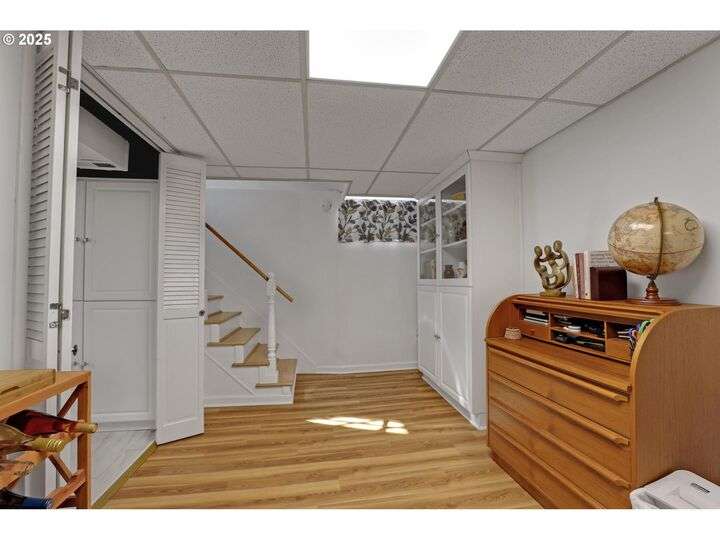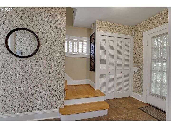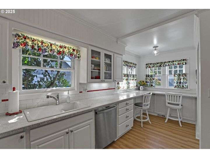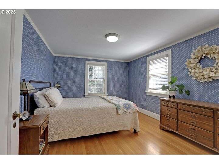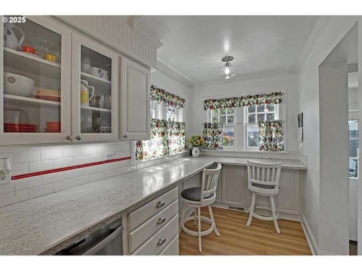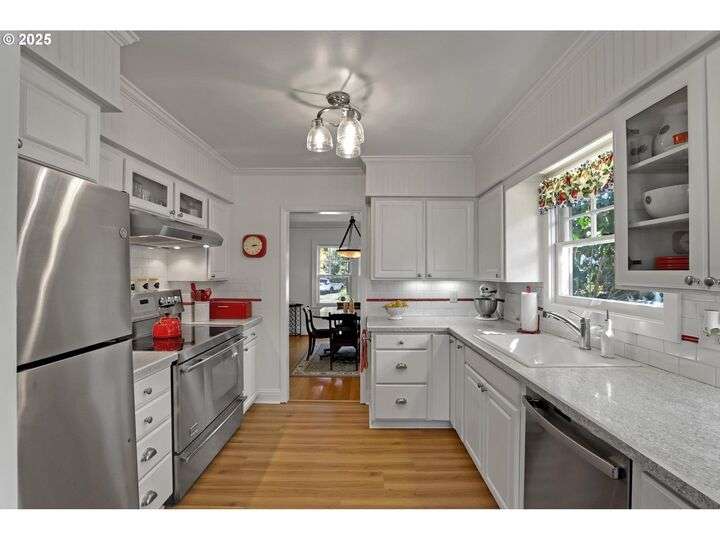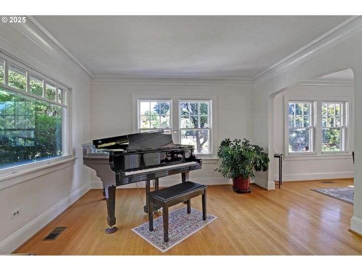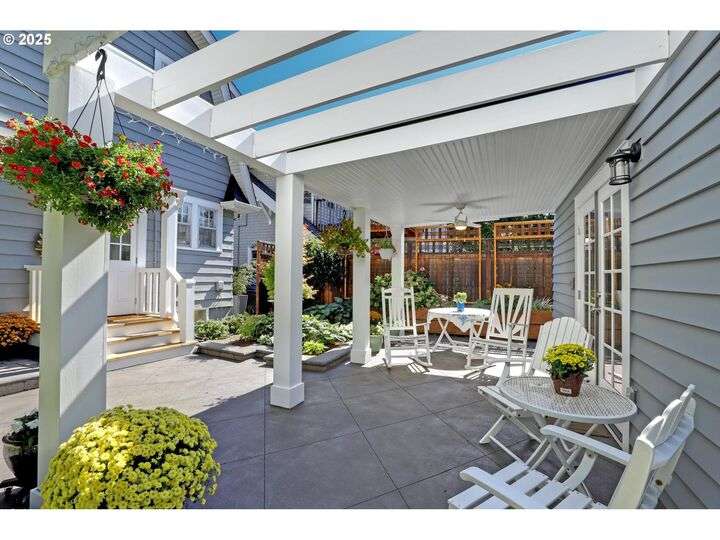 A storybook Colonial on an oversized corner lot in Beverly Cleary/Grant school neighborhood. This special home surrounded by lush gardens feels so good. Ideal floor plan with vintage features including arches, crown molding, and hardwood floors throughout the home. Extensive updates include seismic upgrade, wiring, plumbing, gas HVAC system, gas fireplace, and roof (2015). A newly (2024) renovated detached garage offers single car parking with EV charging and a unique hospitality/kitchenette/studio/garden room opening to the inviting covered patio for year-round entertaining. The east garden benefits from morning sunlight for growing vegetables and flowers. This desirable location is convenient to stores, restaurants, services, and parks. [Home Energy Score = 3. HES Report at https://rpt.greenbuildingregistry.com/hes/OR10241950]