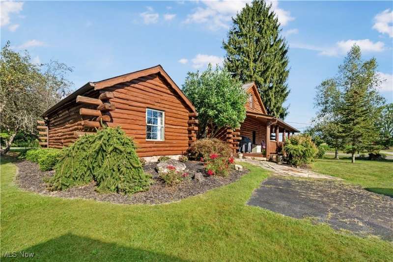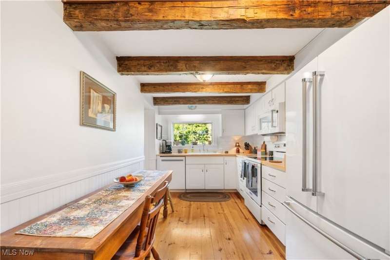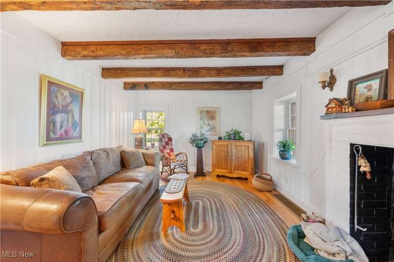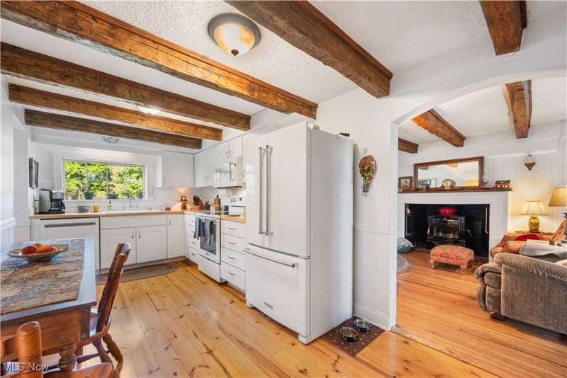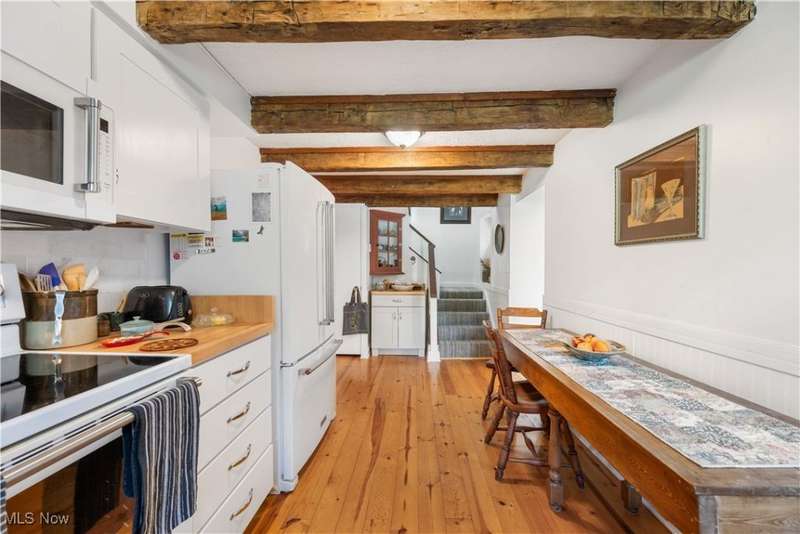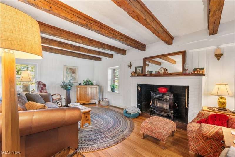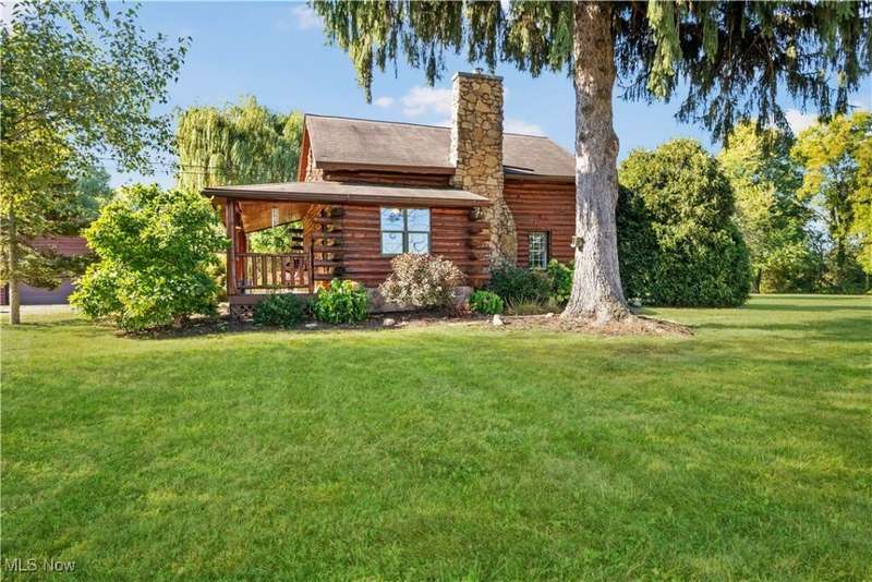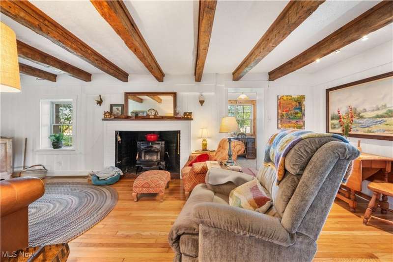 Charming two bedroom, two full bathroom log home, originally built in 1845. This home has been updated and modernized while keeping much of the original character. Starting at the full side porch, enter into either the den or the foyer. The den offers wonderful views of Moore's Tree Farm across the street. A generous foyer with a ceramic tile floor, is light and bright. A fireplace with a wood stove, wood floors, bead board walls, and original wood beams on the ceiling make the living very comfortable and cozy. Fully applianced updated kitchen with original wood beams on the ceiling, white cabinets, marble subway tile backsplash, and butcher block counters. A first floor master suite features a full updated en-suite bathroom with walk-in closet, and a spa-like walk-in shower. A second updated full bathroom, and a first floor laundry complete the first floor living space. The entire second floor is the spacious second bedroom offering wood floors, a large closet, and cubby hole storage area. The basement has original log beams, and stone foundation. A detached garage is heated with a wood stove has a door opener, attic access, lots of electrical outlets, and could accommodate 4 cars if park in tandem. Newer sump pump 2 years old, well pressure tank 4 months old, hot water tank 3 years old, oil tank 3 years old, furnace less than 1 year old. This home is a gem, don't wait to see it!