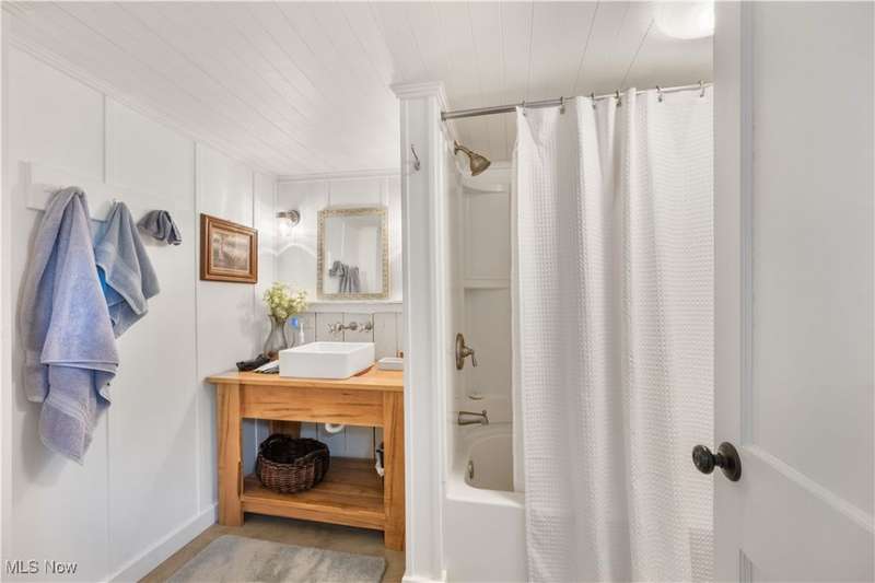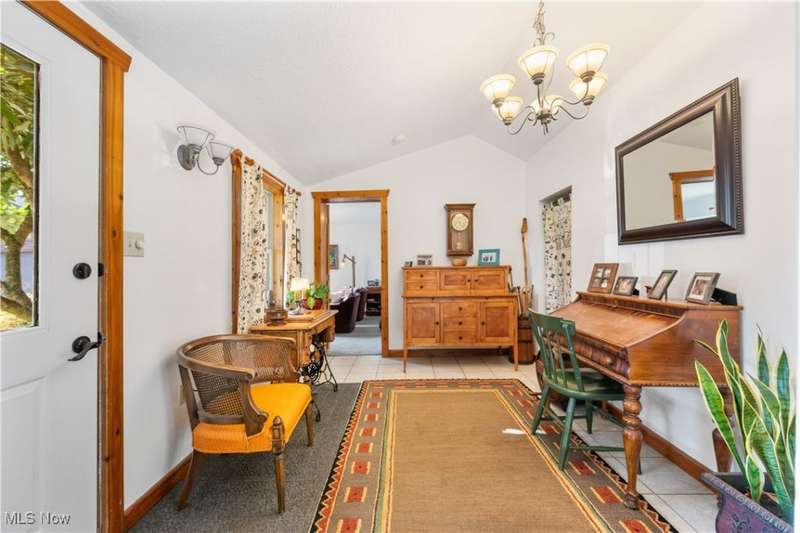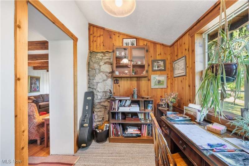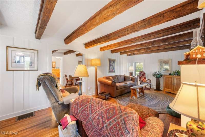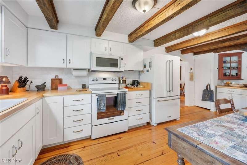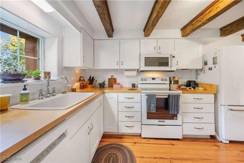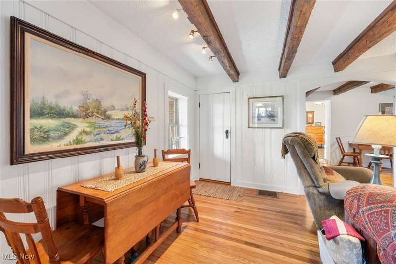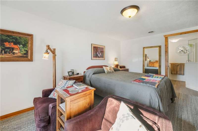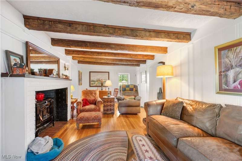 Charming two bedroom, two full bathroom log home, originally built in 1845. This home has been updated and modernized while keeping much of the original character. Starting at the full side porch, enter into either the den or the foyer. The den offers wonderful views of Moore's Tree Farm across the street. A generous foyer with a ceramic tile floor, is light and bright. A fireplace with a wood stove, wood floors, bead board walls, and original wood beams on the ceiling make the living very comfortable and cozy. Fully applianced updated kitchen with original wood beams on the ceiling, white cabinets, marble subway tile backsplash, and butcher block counters. A first floor master suite features a full updated en-suite bathroom with walk-in closet, and a spa-like walk-in shower. A second updated full bathroom, and a first floor laundry complete the first floor living space. The entire second floor is the spacious second bedroom offering wood floors, a large closet, and cubby hole storage area. The basement has original log beams, and stone foundation. A detached garage is heated with a wood stove has a door opener, attic access, lots of electrical outlets, and could accommodate 4 cars if park in tandem. Newer sump pump 2 years old, well pressure tank 4 months old, hot water tank 3 years old, oil tank 3 years old, furnace less than 1 year old. This home is a gem, don't wait to see it!