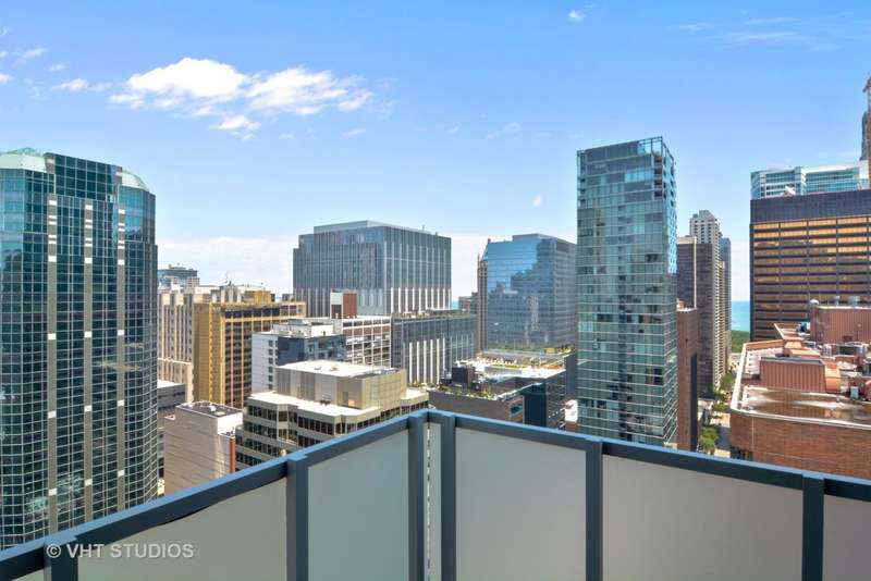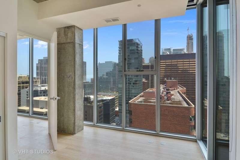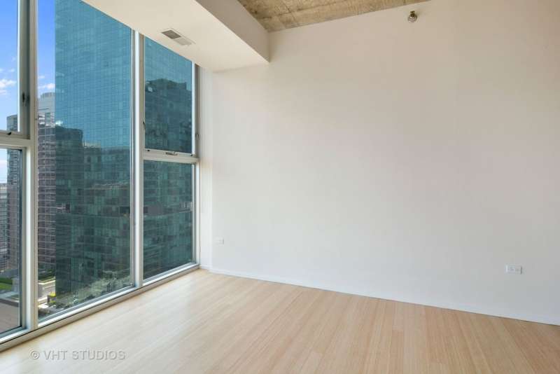 RARE AND COVETED MODERN HIGH-RISE LOFT HYBRID FEATURING NEARLY 2200 SQ FT WITH ALL BAMBOO HARDWOOD FLRS, FLOOR TO CEILING GLASS CURTAIN WALLS, 11' CEILINGS, EXPOSED CONCRETE. THIS RARELY AVAILABLE FLOOR PLAN, 3 FULL BATH HOME FEATURES ITALIAN MADE ESPRESSO ALNO CABINETRY, THERMODOR, SUBZERO, BOSCH STAINLESS STEEL APPLIANCES. GRANITE ISLAND KITCHEN OPENS TO 22X18' LIVING SPACE. TWO PRIVATE TERRACES. BATHS IN MARBLE/HONED TRAVERTINE. SPLIT BEDROOM FLOOR PLAN. THIRD BEDROOM IS FULLY ENCLOSED AND TRUE. MASTER SUITE BOASTS HIS/HERS CLOSETS. BATH DRESSED IN MARBLE AND TRAVERTINE. IN UNIT WASHER AND DRYER. NORTHEAST CORNER SKYLINE VIEWS. 2 HEATED GARAGE PARKING SPACES INCLUDED IN LIST PRICE. ACHIEVE THE BEST OF BOTH WORLDS WITH HIGH-RISE LIVING AND A LOFT STYLE UNIT UNIQUE TO CHICAGO. ALL INCLUSIVE RENT. TENANT ONLY PAYS ELECTRIC.