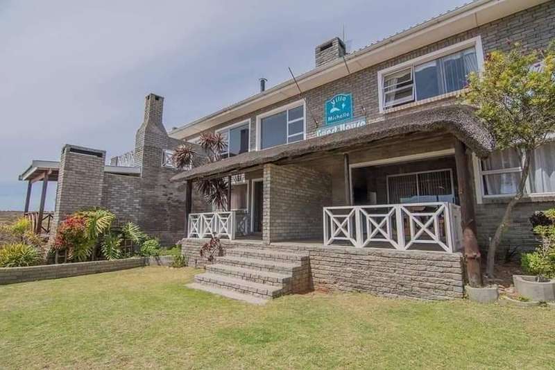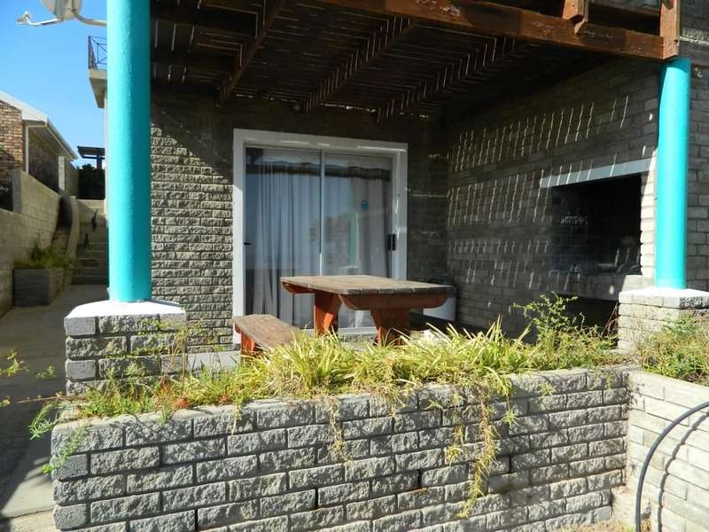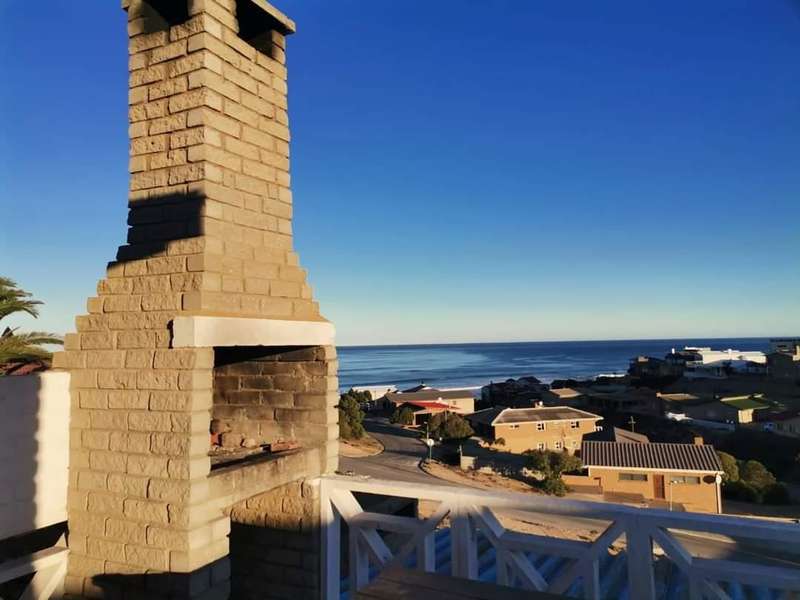 Onderste vlak loop uit op stoep met braai en uitsig oor see (klein tuin vooraan)