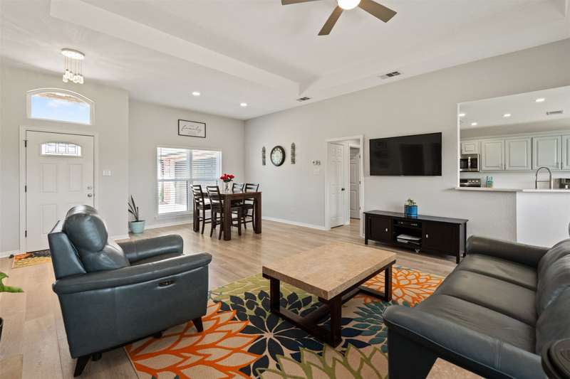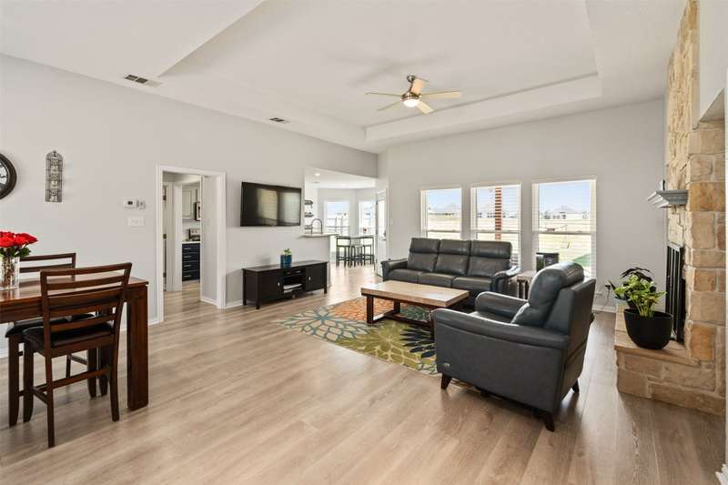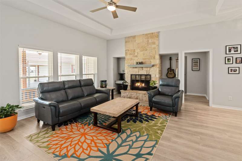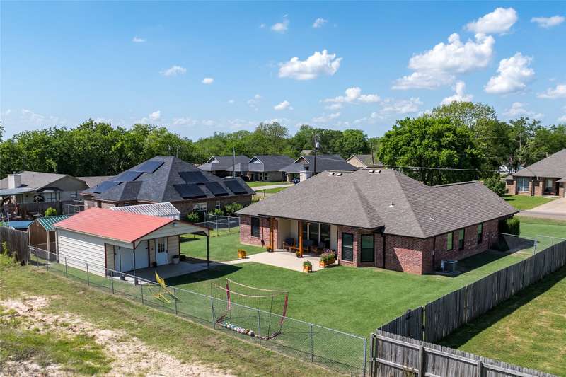 Immaculate Move-In Ready Home in the Heart of Mabank! Welcome to this beautifully updated 3-bedroom, 2-bath gem located in the desirable heart of Mabank. From the moment you step inside, youll be impressed by the countless upgrades and tasteful finishes throughout. Enjoy an open-concept layout featuring fresh paint, recessed LED lighting, and waterproof laminate wood flooring that flows seamlessly throughout the entire home. The kitchen boasts custom cabinetry, sleek quartz countertops, a farmhouse sink, and stainless steel appliancesperfect for both everyday living and entertaining. The spacious living area is anchored by a stunning stone wood-burning fireplace, creating a cozy and inviting atmosphere. The split-bedroom design offers privacy, with the primary suite featuring an ensuite bath complete with double vanities with quartz counters, a separate soaking tub, and walk-in tiled shower. Step outside to a beautifully manicured lawn and a fully fenced backyard. Relax on the covered patio or take advantage of the insulated workshop, complete with an overhead door, LED lighting, and a 30 amp 240V hookupideal for projects, hobbies, or extra storage. This property truly is a showplaceoffering comfort, style, and functionality. Dont miss your chance to make this exceptional home yours!