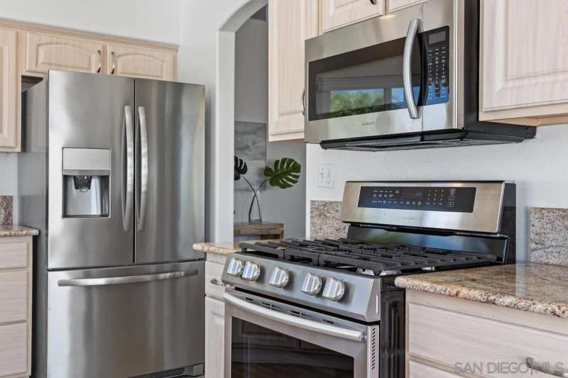 Experience coastal living at Villa Trieste, a desirable 55+ gated community in Oceanside. This 1,860 sq. ft. single-story townhouse with a versatile loft (optional 3rd bedroom) offers 2 bedrooms, 2 bathrooms, and a bright, open floor plan. Natural light pours through soaring ceilings and three sets of French doors--two opening from the family/dining room and another from the kitchen--inviting ocean breezes inside. The kitchen blends function and charm with granite counters, stainless steel appliances, and a cheerful breakfast nook framed by windows. The spacious primary suite includes vaulted ceilings, dual sinks, a large walk-in closet, and a beautifully tiled shower. A comfortable guest bedroom and bathroom complete the main floor, while the loft provides flexible space for an office, hobby room, or visiting family. Step outside to your private backyard oasis with a pergola-covered patio, lush landscaping, and distant ocean views peeking over rooftops--perfect for relaxing with friends or enjoying quiet mornings. Additional highlights include central A/C, indoor laundry, and an attached 2-car garage. Villa Trieste offers resort-style amenities including a clubhouse, pool, and spa, all just minutes from shopping, dining, and the beach.