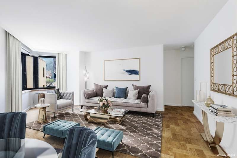This generously proportioned one bedroom/one bathroom rental ;apartment is located in one of Manhattan's most sought after full service condominiums. ;The sizable living room enjoys views North and East, including a view of the ;East River. A separate dining alcove shares a convenient pass-through counter ;with the kitchen, which boasts stainless appliances and includes a five burner ;stovetop/oven, dishwasher, and microwave. The large bedroom shares the same ;views as the living room. The bathroom is finished in marble, and offers a ;shower/tub. This apartment has ample closets, including one large walk-in.