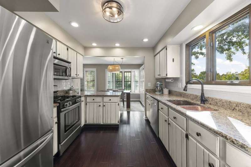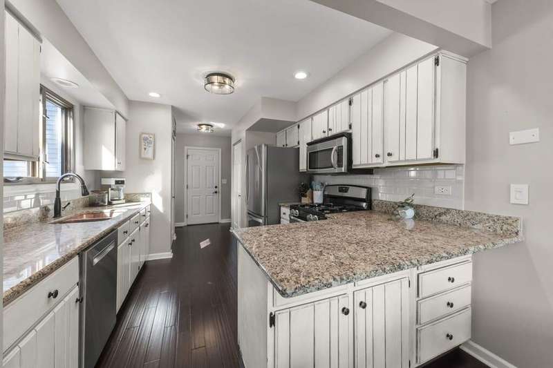 Welcome to Devonshire of Naperville, offering unmatched convenience just minutes to downtown, shopping, dining, Riverwalk, Centennial Beach, library, and train. Enjoy a vibrant lifestyle in the heart of Naperville.This spacious 4-bedroom, 2.1-bath duplex with a full finished basement offers over 2,000 square feet of living space above and below grade. Take in the warmth of 5" hand-scraped hardwood floors that flow throughout the main level. The inviting living room features a stunning floor-to-ceiling brick fireplace, while the separate dining room with a bay window adds charm. Enjoy hosting in the updated kitchen, featuring stainless steel appliances, granite countertops, a subway tile backsplash, breakfast bar, and a large pantry. With plantation shutters, updated lighting, and modern color tones, this home is move-in ready and thoughtfully designed. Step outside from the kitchen to your private outdoor oasis-a custom paver patio with firepit, surrounded by a football field-sized greenspace and partially enclosed with a 6-foot privacy fence-perfect for entertaining, recreation, or relaxing. Upstairs, the primary suite offers a walk-in closet with an updated wood organization system and a gorgeous ensuite bath. Two additional bedrooms share a stylish updated hall bath. The finished basement expands your living options with an additional family room, fourth bedroom, and ample storage space-a rare feature in this community. Many new updates including roof 2022, sump pump with backup battery 2023, HWH 2021/2022, fence 2023, HVAC/humidifier/furnace 2024, washer and dryer 2024, driveway resealed 2025, and more. Located within award winning District 203 schools-Elmwood, Lincoln, and Naperville Central HS. Exceptional opportunity to own in one of Naperville's most desirable neighborhoods!