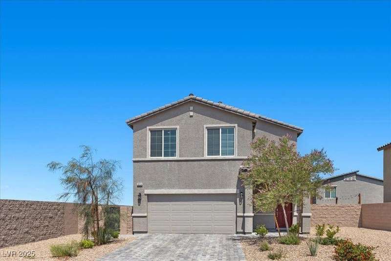 Nestled in a serene cul-de-sac of a newer community, this exceptional two-story residence is everything you've been searching for. Built just two years ago, this move-in ready gem boasts modern elegance and comfort, perfect for families or anyone looking to enjoy the best of Las Vegas living. As you step inside, you'll be greeted by an open-concept layout that seamlessly blends spaciousness with cozy charm. The heart of the home features a stylish kitchen equipped with gleaming granite countertops and ample storage space. Venture upstairs to find 3 bedrooms and a primary bedroom with private bath, boasting both tranquility and relaxation. The well-appointed bathrooms include modern fixtures and comfortable layouts designed with your convenience in mind. Step outside into your beautifully landscaped backyard oasis?a perfect escape from the bustling city life.