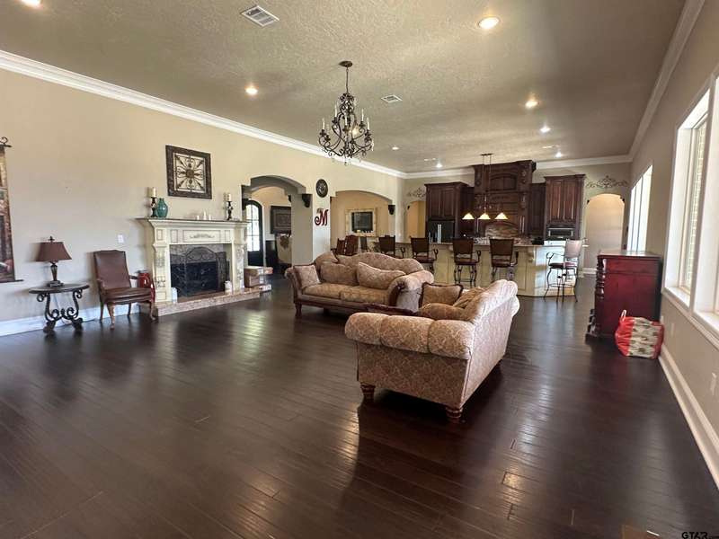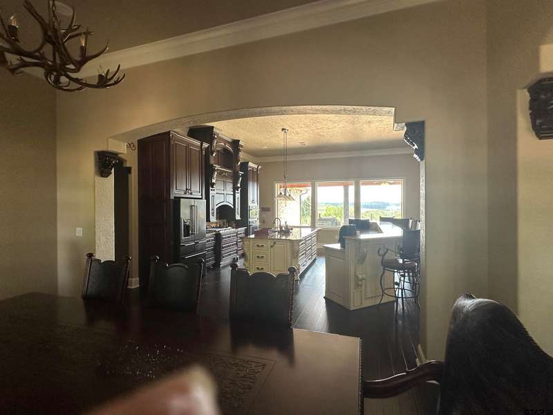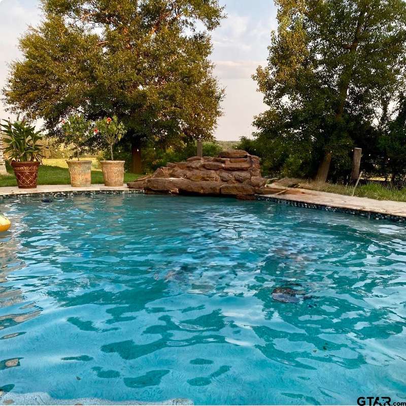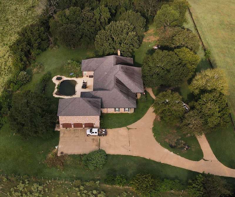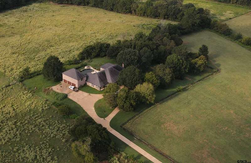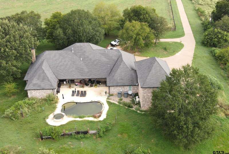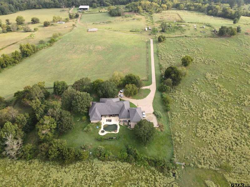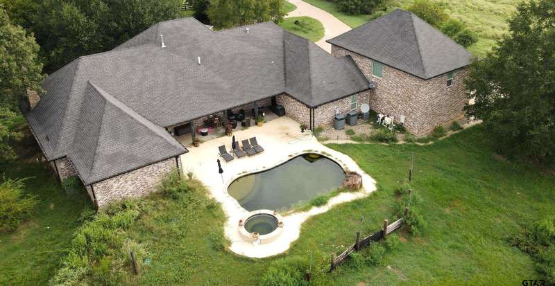 Gorgeous 4B3B Austin stone built home on over 200+ acres! Built in 2017, this property features hardwood flooring thru out, with an open floor plan to the ..... living, dining, and kitchen areas overlooking the inground pool and stunning country views. Home offers an upstairs over 3 car garage for game room/storage or both. Second living room, private office, cypress columns, propane gas log fireplace & 3 Trane energy efficient heat pump units & 2 stage systems. On demand water heater. Land is approx. 85% pasture (lots of coastal hay meadows) and approx. 15% wooded with a creek dividing adjacent land owner. Former dairy farm with lagoon, stock pond and addn water features. Barn/shop 64x60 concrete flooring. Covered front porch provides peaceful views of open pasture. Located in the desirable Rusk School District. Some fencing in place. Needs some TLC but still pretty much move in ready. GORGEOUS home and views!!!