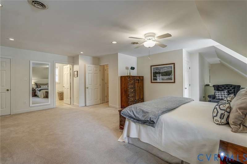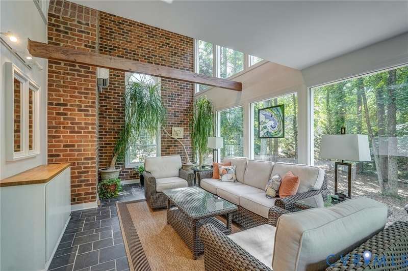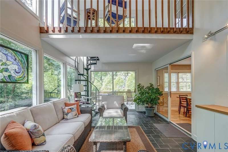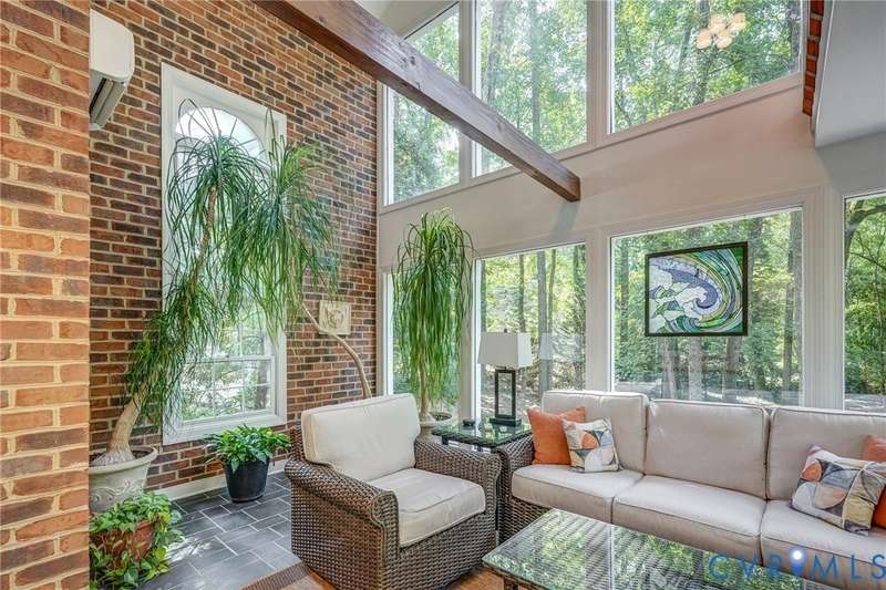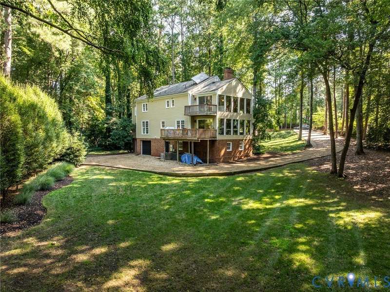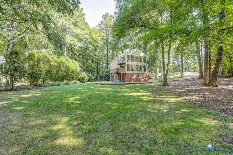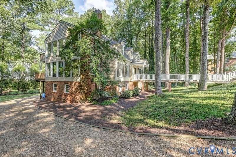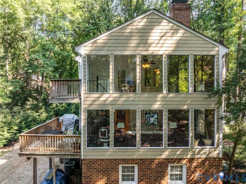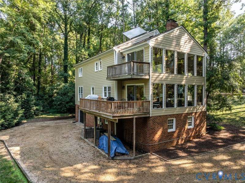 ""Welcome to your own private retreat in the rolling hills of Countryside! Traditional on the outside, this home has a modern, contemporary look and feel on the inside. Tucked away at the end of a quiet cul-de-sac just off the scenic River Road corridor, this serene PASSIVE SOLAR-powered home sits on a lush and private .7-acre lot with mature trees and plantings. Built by Lee """"Rusty"""" Rothrock of Natural Concepts, this home offers 4 bedrooms, 4 baths on 3 spacious levels for both comfort and flexibility. Step inside and find warm hickory wood floors and a well-thought-out floor plan. To one side of the entryway, you'll find a cozy family room with built-in bookcases and a wood-burning fireplace-perfect for chilly evenings. To the other, an open living and dining area is ready for gatherings of any size. The kitchen is a cook's best friend, with a center island, granite countertops, SS GE Profile and JennAir appliances, plus rollout cabinet shelves and a built-in wine rack. Enjoy your morning coffee in the sunny breakfast nook, or in the adjacent slate-floored sunroom with wood beams and walls of windows overlooking the peaceful backyard. Step outside to the deck, or follow the winding staircase to the upstairs sunroom and balcony for even more fresh-air views. A first-floor suite with a walk-in closet and full bath can serve as a guest space, home office, or den. Upstairs, you'll find three more bedrooms and a hall bath, including a spacious primary suite with multiple closets and an ensuite bath featuring a double vanity and spa shower. The walk-out lower level offers a second family room with a woodstove plus a wonderfully flexible room that could work perfectly as a playroom, teenage hangout or 5th bedroom, with a full bath close by. Finally, there's a bonus room that could serve as a craft area, office or gym, or it could be converted back to a garage space! This home blends privacy, comfort, and versatility in a beautiful natural setting-making it the perfect place to settle in and stay awhile.""
