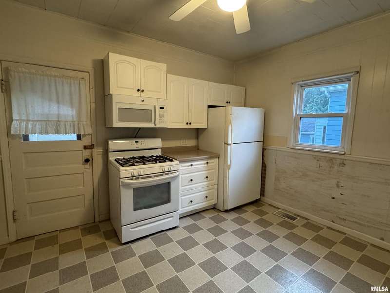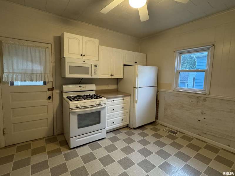 Discover all the charm and space this 4-bedroom, 2-bath home has to offer. The main floor features a generous layout with a spacious living room, dining room, kitchen, one bedroom, a full bath, and a convenient laundry room. Character abounds with tall ceilings, detailed trim work, and a charming faux fireplace in the dining area. Upstairs, you’ll find three additional bedrooms and a beautifully remodeled full bathroom. Step outside to enjoy the covered patio, perfect for relaxing while overlooking the vibrant flower beds and fully fenced backyard. A detached 2-car garage adds even more functionality.