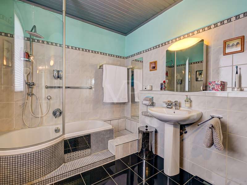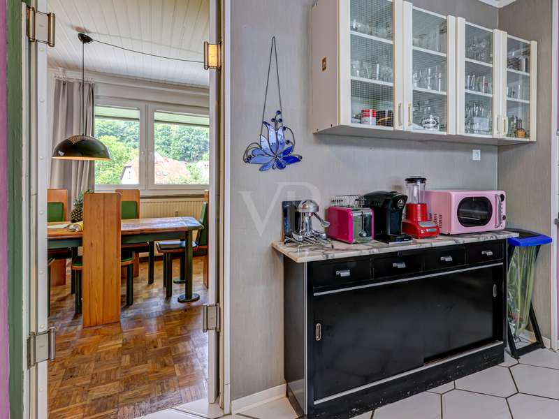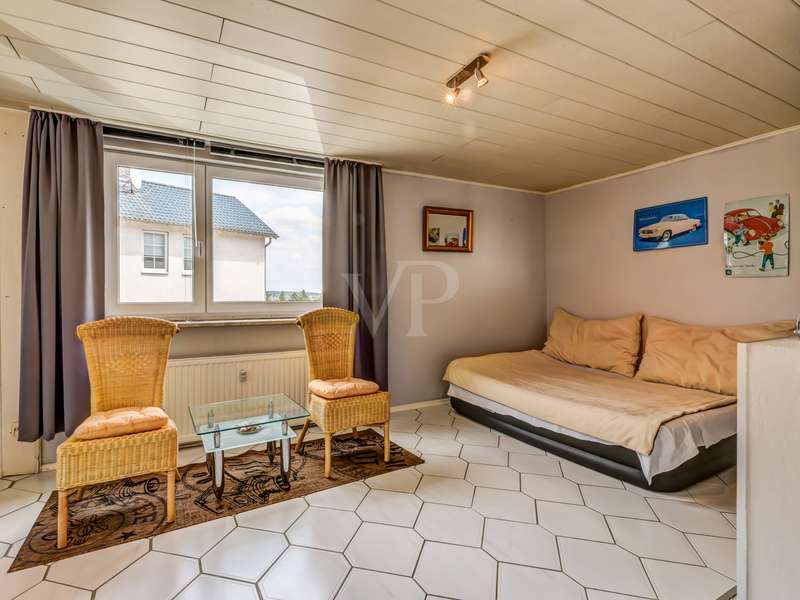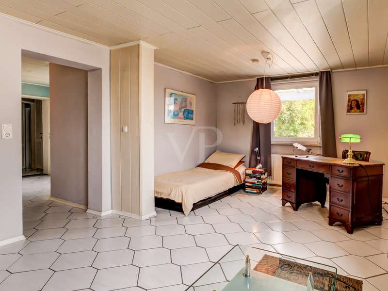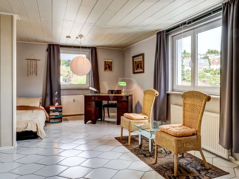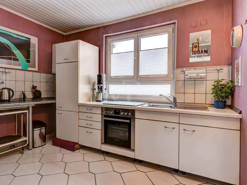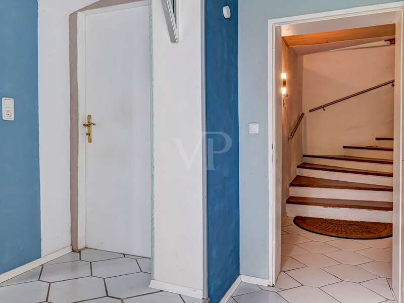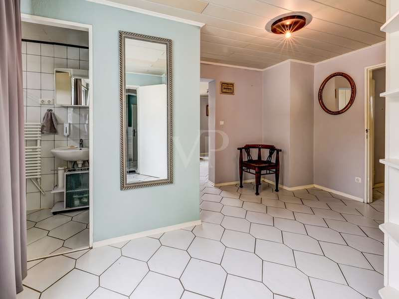 A home with character - for anyone looking for something special This house is not for everyone and that is precisely what makes it so appealing. Anyone looking for peace, quiet and stylish living rather than a children's playground and trampoline will find a home here that stands out from the ordinary. Whether alone, as a couple or as a small family with a slightly older child - this house offers exactly the space you need without getting lost. You can feel the solid character of this property as soon as you enter. The solid construction, the floor plan and the homely ambience make it easy to feel at home here immediately. The living area on the upper floor is open-plan and invites you to spend relaxing hours with its cozy fireplace - whether reading, enjoying a glass of wine or simply unwinding after a long day. The adjoining terrace offers a quiet place to have breakfast, take a break or enjoy a relaxing evening outdoors. Here you can switch off, take a deep breath and leave everyday life behind you. Particularly practical: the existing granny annex can be used flexibly - for example as an office, hobby area or as an independent retreat for growing children or guests. This layout makes the house particularly versatile and future-proof - no matter how life circumstances develop. The interior is well-kept and down-to-earth, with high-quality parquet and tiled floors and double-glazed windows. Many of the essentials have been sensibly modernized over the years. Outside, the house impresses with a friendly painted façade, a beautifully landscaped courtyard and a quiet, manageable plot that requires little maintenance - ideal for those who prefer living to gardening. Also practical: in addition to a garage with direct access, there are further parking spaces available - for you, your guests or even the motorhome for the next weekend getaway. This house is a retreat with potential, not a noisy family center - but a place for people who like life to be a little quieter and more individual.