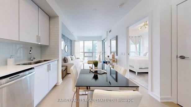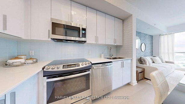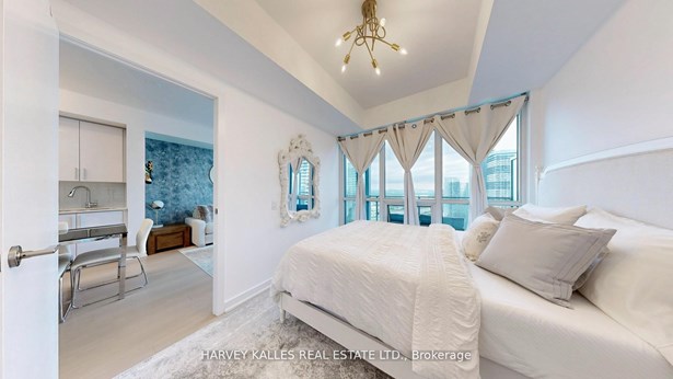 Luxury Lakeside Living with Sunrise Views - Fully Upgraded With Luxury Furnishing Included. Welcome to Suite 4008 at Westlake Phase II, where elegance meets comfort in this builder-upgraded and designer-finished 1 Bedroom + Study suite. This bright and airy home features soaring ceilings, floor-to-ceiling windows, and a southeast exposure that delivers breathtaking sunrises, park views, and sweeping vistas of Lake Ontario. This immaculate unit is fully furnished and equipped, making it a perfect turnkey home or investment. Enjoy a chef-inspired kitchen with full-size stainless steel appliances, including a brand new, never-used dishwasher, and top-of-the-line tiles on both the backsplash and feature walls. The living space is enhanced with custom light fixtures, textured designer wallpaper, and elegant mirrors, all included. Recently painted, with new 7'1/4 hardwood flooring and modern baseboards, the space is move-in ready! The versatile den/study currently used for extra storage with included sliding doors can easily function as a home office or creative nook. Step onto your private balcony complete with included patio furniture and accessories, perfect for relaxing with the sunrise or entertaining guests. Situated in a quiet, well-maintained building, Westlake Phase II offers resort-inspired amenities: 24-hour concierge & security, state-of-the-art gym, indoor pool, spa, sauna, hot tub & yoga studio, rooftop terrace, BBQ area, guest suites, party room,squash courts, business board rooms, massage rooms and children's indoor play area. All just steps to Metro, Starbucks, Dentists, Banks, Restaurants, LCBO, Shoppers Drug Mart, Humber Bay parks, TTC, and the waterfront trail. Easy access to downtown and the Gardiner Expressway.10 Mins. Drive To Mimico Go Train. Includes one parking space and one locker. Unit also for lease (short or long term lease available).
