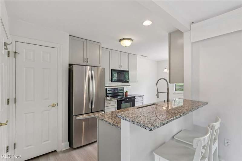 Conveniently located near all major highways, shopping and restaurants is this beautifully updated 2-bedroom, 2 full-bathroom condo featuring an expansive, sunlit living room with new flooring, sliding doors to a covered balcony and open dining area. The newly updated eat-in kitchen offers granite countertops, counter seating, a pantry and is equipped with all appliances. Located off the eat-in area of the kitchen, is a second covered balcony with a large storage closet perfect for relaxing or entertaining. The spacious primary suite includes an en-suite bath and walk-in closet, while the second bedroom provides great space and versatility for your needs. This condo comes with a secure and spacious one-car garage with a private storage locker for added convenience. Enjoy access to the welcoming community room featuring a workout area, relaxing sauna, and cozy sitting space with a fireplace-perfect for unwinding or socializing. Updated features include: New Kitchen. Flooring and paint throughout. Pedestals in both bathrooms. Furnace and A/C (2019) Hot Water Tank (2017)