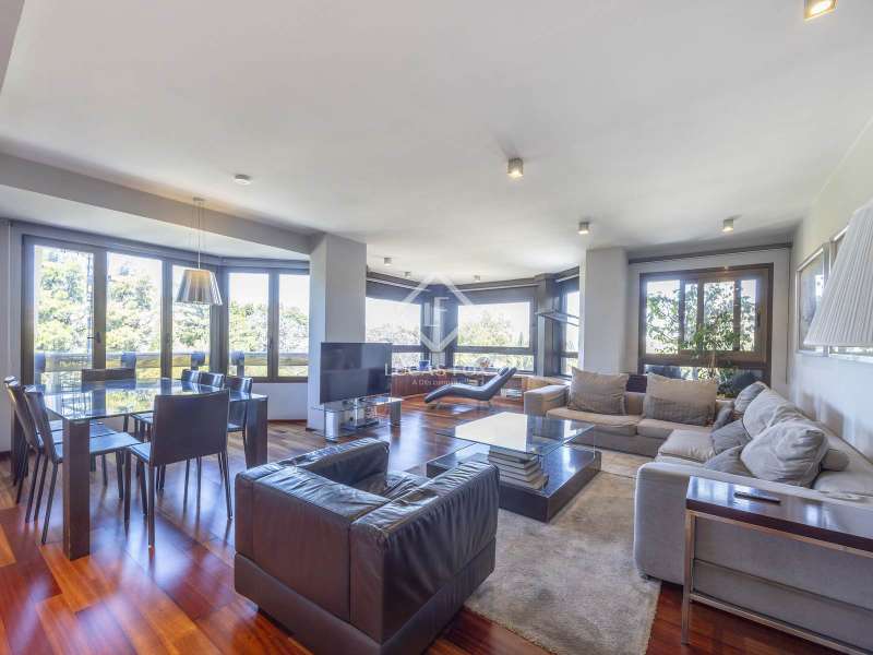 Lucas Fox presents this magnificent and elegant apartment in one of the most prestigious areas of Valencia, Pla del Real, just steps from the Turia River Gardens and Viveros Park, two of the city's main green areas. This spacious, generously sized property , renovated with fine materials and top-quality finishes, has been carefully maintained and retains a timeless and modern aesthetic thanks to its excellent state of preservation. The property comprises a total constructed area of 266 m², which houses the main property and an annex apartment, currently physically joined, but with independent cadastral references, which adds versatility. Upon entering the property, we are welcomed by a spacious and stately entrance hall, which acts as a hall hub to the different areas of the house. From this space, we access the impressive living-dining room, an open space of great spaciousness and elegance, abundant with natural light thanks to its large windows that overlook the garden areas . The separate kitchen, next to the living room, is floor and has ample storage capacity thanks to its custom-made furniture. It also has enough space to accommodate a dining room table, making it a very functional and practical area for everyday use. It has access to a practical utility room or laundry area. The night area is intelligently laid out and completely independent. The property offers four spacious double bedrooms, all exterior-facing, equipped with large built-in wardrobes and oversized windows that ensure excellent natural ventilation and abundant light. Two complete bathrooms serve this area, both equipped with high-end sanitary fixtures, elegant wall tiles, and thoughtful lighting. Of particular note is the generously proportioned main bedroom , with a very large custom-made dressing room and a generously sized full bathroom . It also enjoys unobstructed views of green areas and excellent natural light. The entire property has been renovated with high-quality materials and high-quality finishes: natural tropical wood floors, a ducted hot/cold air conditioning system, individual radiator heating, ideal for the winter months, solid natural wood interior carpentry, exterior carpentry with thermal break and a thermal and acoustic insulation chamber, for greater comfort and energy efficiency. The property is located in a landmark building in the Pla del Real neighbourhood , with an elegant facade and well-maintained communal areas. La Finca features a 24-hour concierge service and security, providing residents with peace of mind and security. The location is undoubtedly one of the main added values of this property: surrounded by nature, yet just minutes from the city centre , perfectly connected by public transport and with all amenities within easy reach: schools, universities, supermarkets, medical centers, sports areas , and an excellent gastronomic offering. The property also has a large and convenient parking space included in the price, with direct elevator access , allowing for maximum convenience.