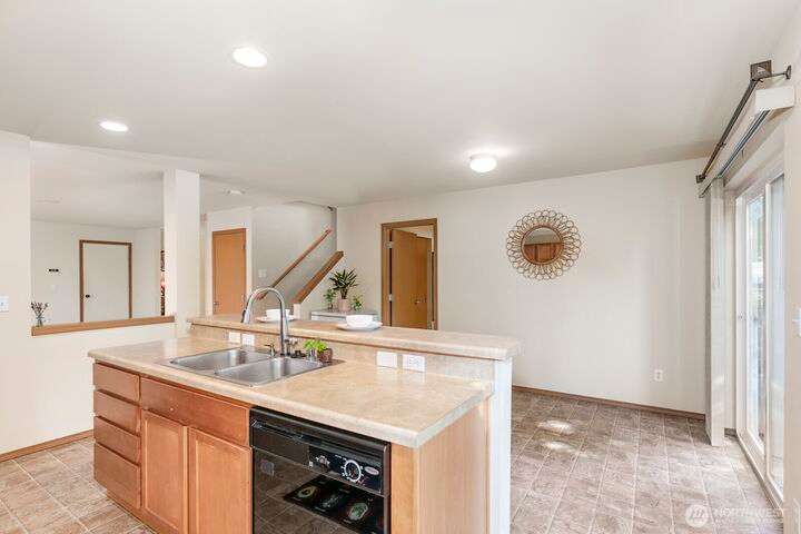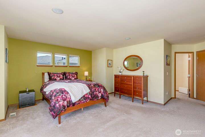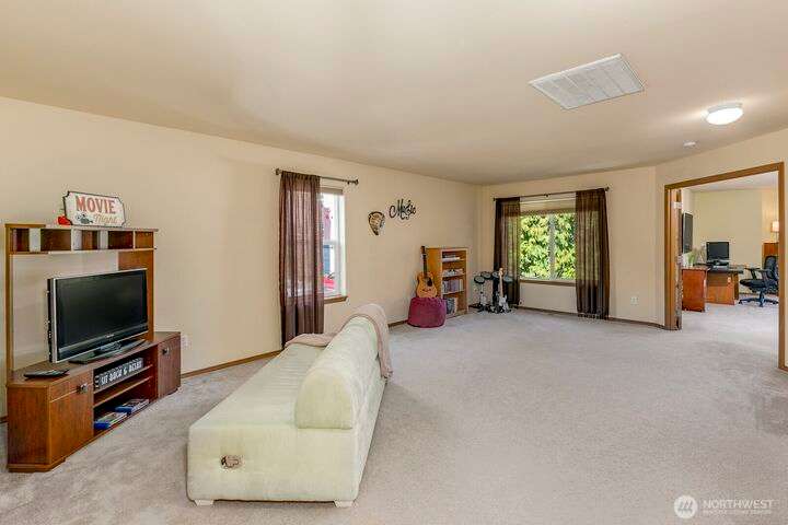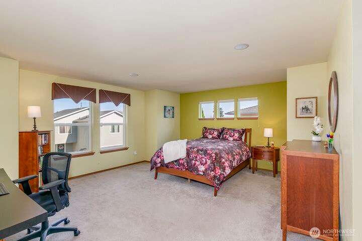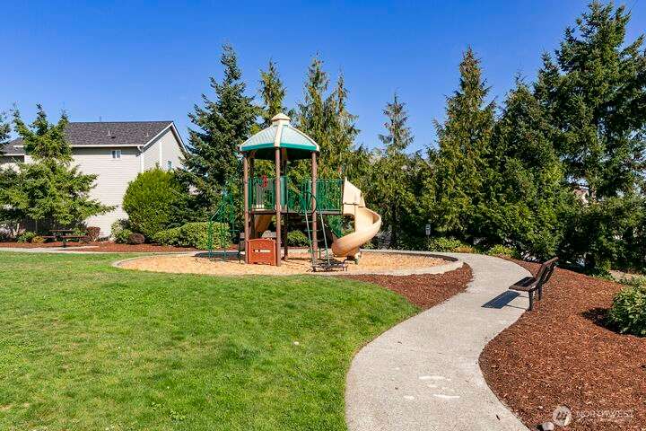 Welcome to the former model home showcasing a light-filled floor plan designed for today’s lifestyle. The expansive living room flows into a lg dining rm & sunny kitchen w/2-level island, Whirlpool appl & lots of counter space, perfect for gathering. Enjoy surround sound & fresh updates. 4 big bedrooms, incl a main floor Jr suite w/full bath. French doors lead to the upper Primary ensuite complete w/lg bth & WIC. A versatile bonus room adds flexibility for play or media. Ideal corner home on a dead-end street for max privacy. Just steps to the community playground, perfect for outdoor fun. Easy care yard w/irrigation, pre-inspected & move-in ready. Pkg for 4 w/2-car garage + driveway. Near I-5, Boeing, Ald Mall, multiple Park n' Rides.
