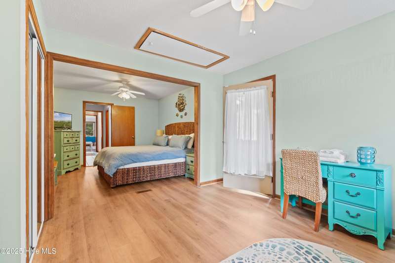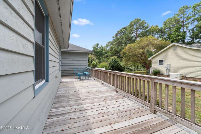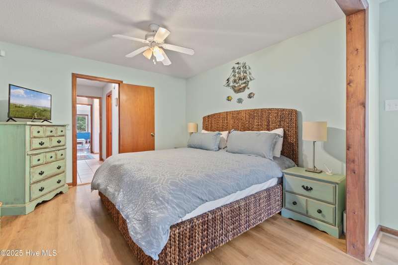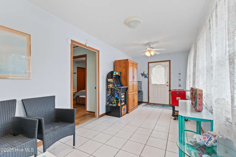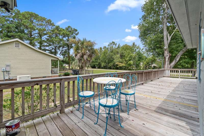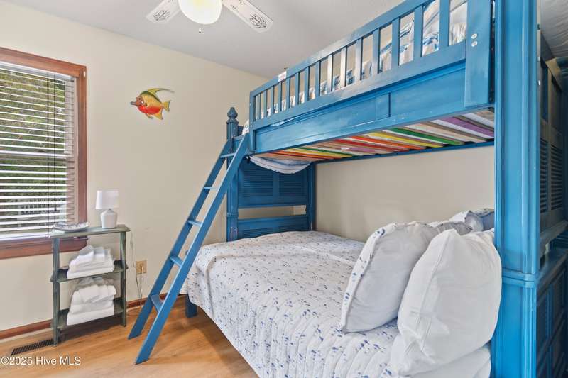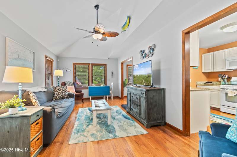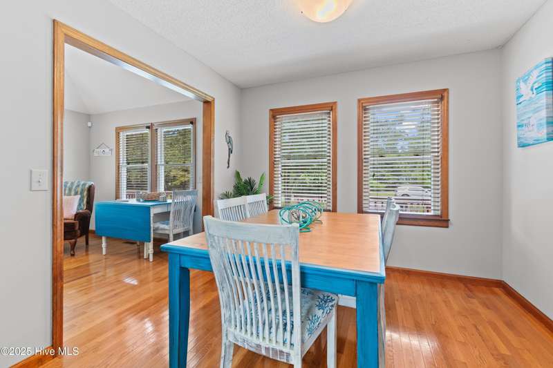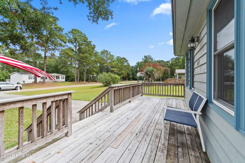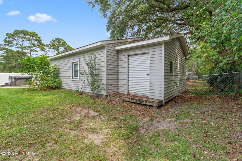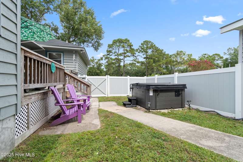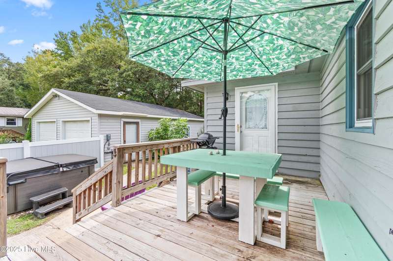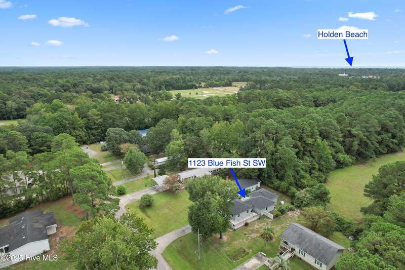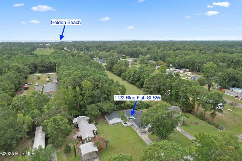 Welcome to 1123 Blue Fish Street, your next coastal getaway or primary residence. This 2-bedroom, 2-bath home is situated on a spacious double lot and is located less than 2 miles from award-winning Holden Beach! The detached two-car garage on the property provides ample storage or workshop space, complete with its own HVAC system, plus a separate bay for a golf cart or recreational vehicle. New vinyl fencing provides privacy and peace of mind, while the wraparound porch is perfect for your morning coffee or evening cocktail. Inside, you'll find beautiful hardwood floors throughout the living, kitchen, and dining areas. The spacious master suite features new LVP flooring and a separate room currently used as additional sleeping space—perfect for an extra bed, office, or lounge area. Off the rear, a bright and spacious sunroom brings in an abundance of natural light and is perfect for relaxing or entertaining. Even better—it's being offered fully furnished, hot tub included! With a brand-new HVAC system installed in 2025, this property is ready to enjoy as a personal retreat or investment opportunity. Holden Beach is centrally located between Wilmington and Myrtle Beach. Come and take a look for yourself today!