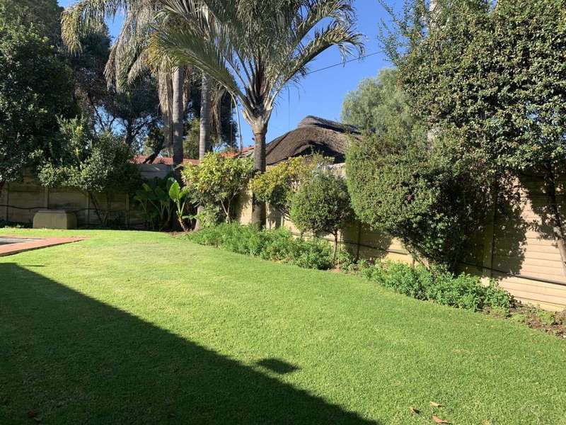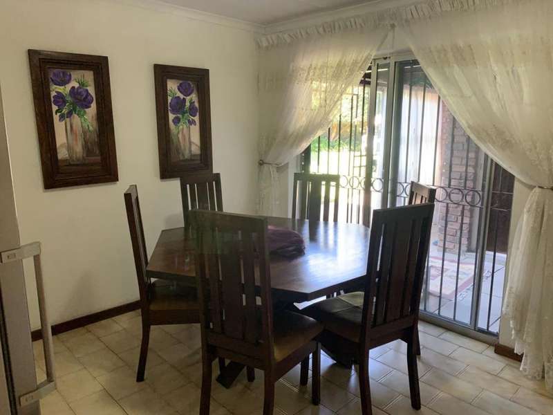 Looking for space? This lovely spacious property in Rooihuiskraal is the ultimate retreat for a family with young children . The luscious green garden surrounds the home and is easily maintained by an automated sprinkler system and a borehole. The home has a lovely kitchen, with an adjacent laundry and separate play/entertainment room on the side. The home consists of a spacious lounge, a dining room and extra room that can be used for a dining room or study. The kitchen has granite tops and has ample cupboard space, and space for a dishwasher , large fridge and stove. Next to the kitchen is a laundry area with space for large washing machines and a drier . The home has three spacious bedrooms with one en-suite bathroom for the main bedroom, consisting of a shower, basin and toilet. The extra bathroom has a shower, basin and toilet. All bedrooms have ample built-in cupboards, with extra built-in cupboards in the corridor that provides space galore. This home is equipped with solar panels and an inverter so that any loadshedding or power outage will not be a problem. A double garage with automated garage doors is convenient for parking, as well as a tandem undercover parking with space for two large vehicles. The boma and swimming pool situated at the back of the house lends itself to enjoyable summer entertainment. Grab this gem before it is too late ! call now for an appointment to view. Area details: Laerskool Uitsig: 0.13 km Loerie Land Independent School : 0.14 km Hoerskool Uitsig Public Secondary School: 0.70 km Amberfield College: 1.65 km Jacaranda College, Public Primary School : 1.66 km Laerskool Rooihuiskraal : 2.26 km Curro Thatchfield High School: 2.35 km Curro Thatchfield Primary School: 2.41 km Entheos Christian School 2.45 km Orefile Primary School : 2.66 km Closest shopping: Panorama view: 0.23 km Engen Quick Shop : 0.63 km The Reeds Shopping Centre: .70 km Thatchfield Shopping Centre : 1.11 km Blu Valley Mall: 1.44 km Total Bonjour : 1.46 km