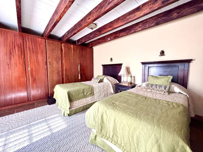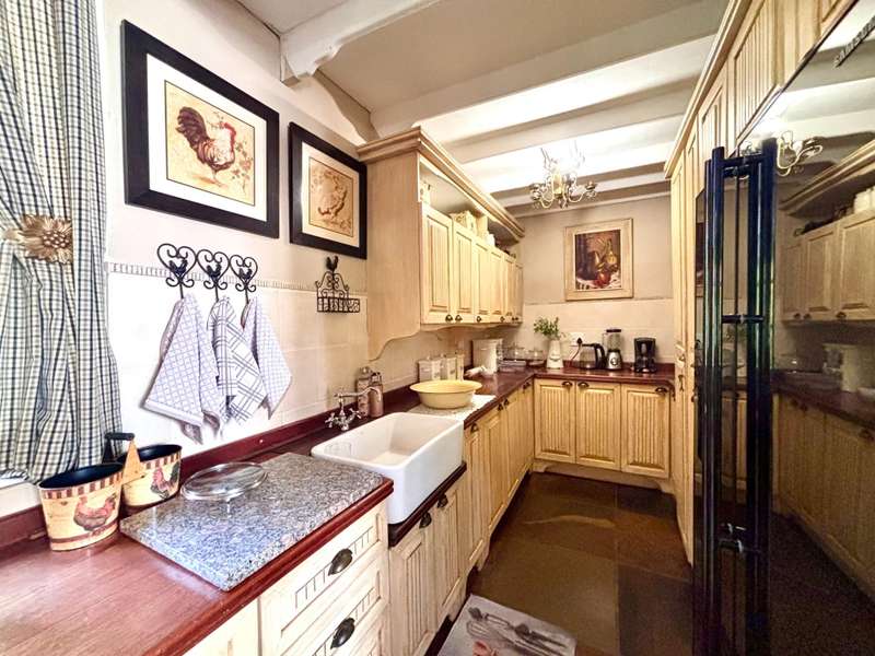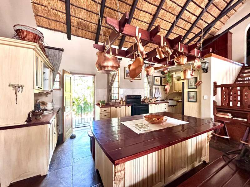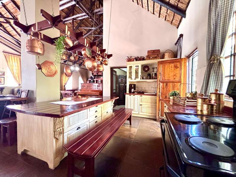 Welcome to this beautifully designed Cape Dutch-style family home located in the heart of Bela-Bela. Offering a seamless blend of classic character and modern comfort, this spacious property features 4 bedrooms, with 3 generously sized rooms, including 2 with en-suite bathrooms, perfect for family living or accommodating guests. The home features a large, open-plan layout that connects the kitchen, dining room, TV lounge, and formal living area, creating a warm and versatile space for everyday living and entertaining. Bedrooms and bathrooms are privately situated, offering peace and quiet away from the main living zones. A separate laundry area with built-in cupboards adds practicality and extra storage, ideal for busy households. Step outside to a lush, expansive garden, perfect for children, pets, or simply relaxing in nature. Enjoy the sparkling swimming pool with pump, and host unforgettable gatherings under the covered lapa with a built-in braai. A graceful fountain welcomes you at the entrance, setting the tone for this elegant home. Additional features include: Double garage Open front porch Cape Dutch architecture with timeless charm This inviting home offers comfort, style, and space in a prime Bela-Bela location. A must-see for those seeking classic beauty with modern convenience!