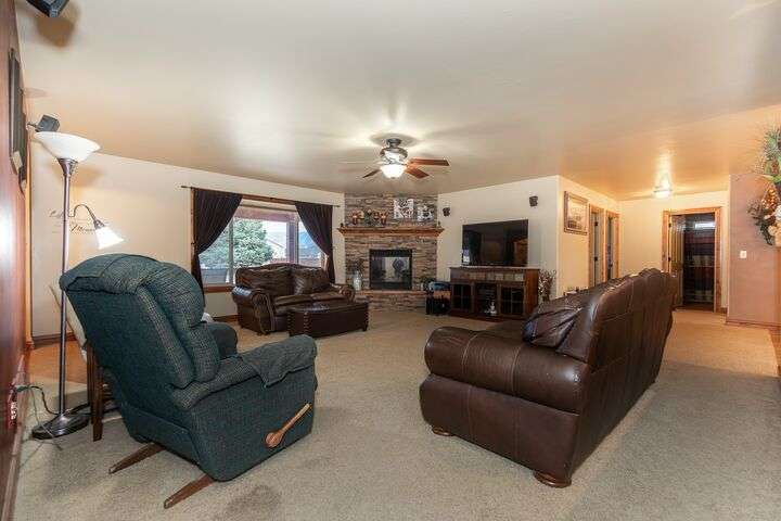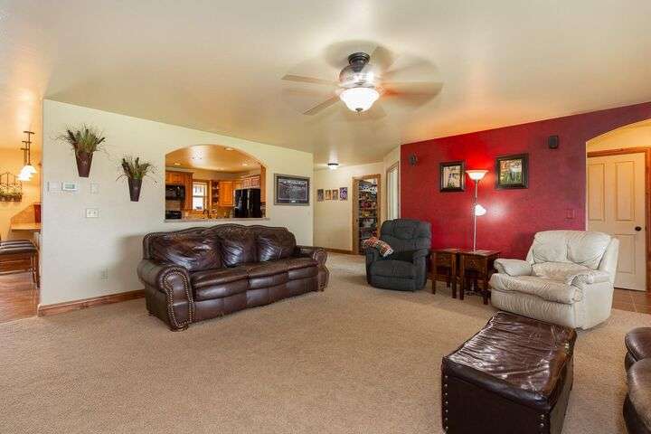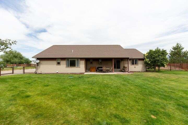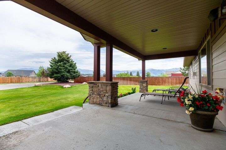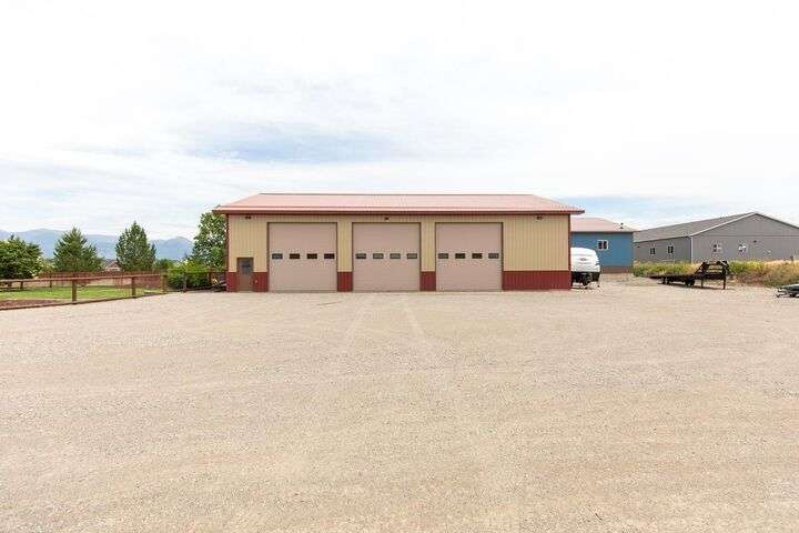 Nestled on a generous 1.09-acre lot, this stunning single-level home offers the perfect blend of comfort, functionality, and outdoor charm. Step inside to discover 3 spacious bedrooms, 2 well-appointed bathrooms, a dedicated home office, and a walk-in pantry for all your culinary needs. The heart of the home welcomes you with warm, inviting spaces. Outdoor Bliss - Enjoy beautifully landscaped grounds, fully fenced with underground sprinklers, and a cozy firepit area to gather under Montana’s endless skies. Whether entertaining guests or unwinding in solitude, the outdoor space offers a tranquil retreat. Storage & Space Galore - Beyond the attached 2-car garage, the property boasts an incredible 3,400 sq ft shop—large enough to house your 5th wheel, toys, tools, and more. Need extra storage? The 24’ x 40’ lean-to shed has you covered. A View to Savor - Take in breathtaking views of the Bridger Mountains from your backyard, creating a daily backdrop of natural beauty.