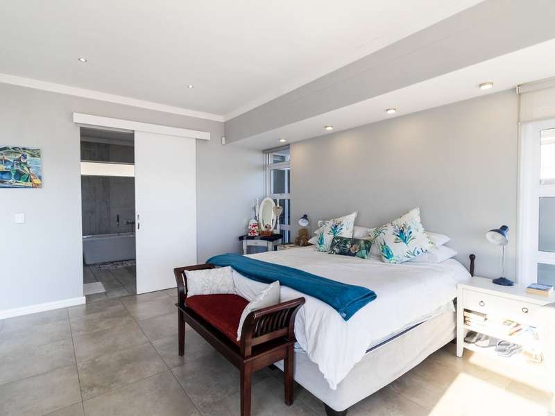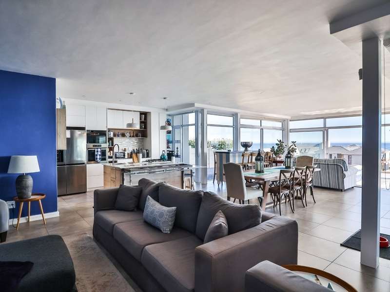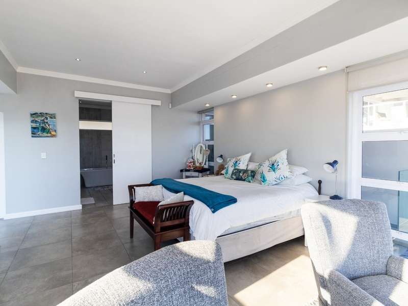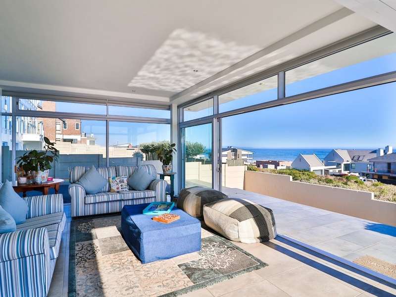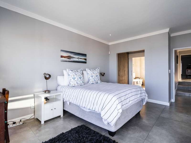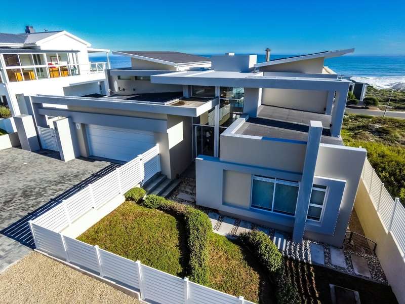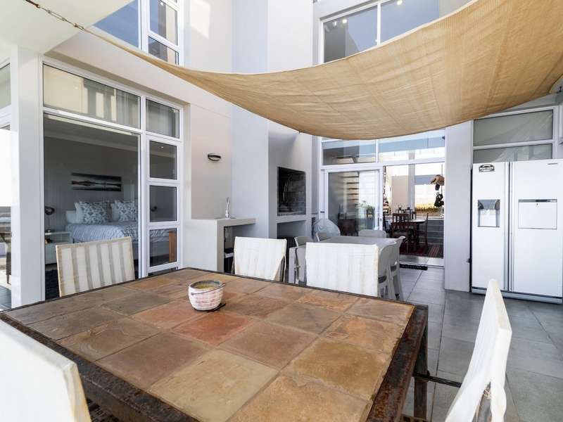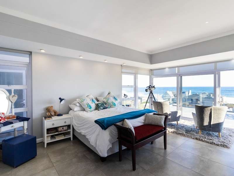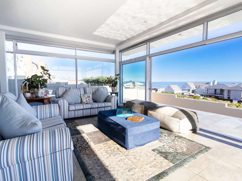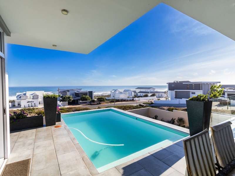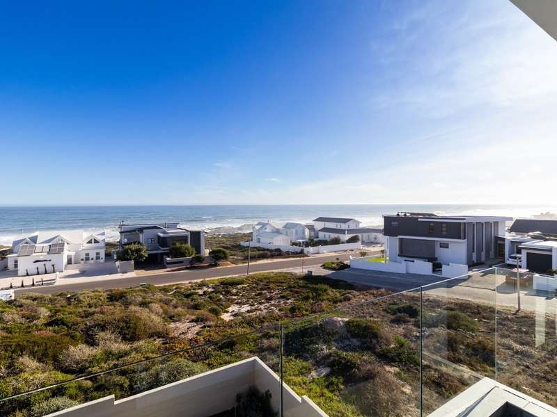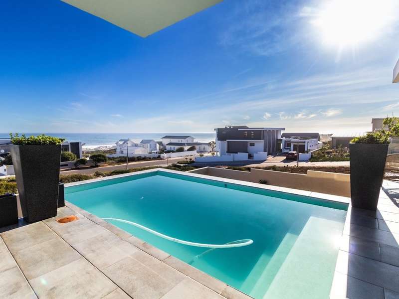 This breathtaking double-storey home captures sweeping, uninterrupted views across the Atlantic Ocean, including views of the iconic Table Mountain to the distant silhouette of Dassen Island from the upper level. Designed for seamless indoor-outdoor living, the open-plan lounge, dining, and kitchen areas spill effortlessly onto a spacious veranda, where a sparkling pool and built-in braai create the perfect setting for sun-drenched days and starlit evenings. Floor-to-ceiling sliding doors throughout the living spaces invite in the natural light and the spectacular scenery, while a stylish kitchen with a central island and separate scullery ensures everyday practicality and elegant design. Upstairs, the master bedroom is a serene en-suit retreat with panoramic ocean views, a vista that will remain untarnished, no matter future development. This sanctuary flows through to a second en-suite bedroom sharing in the majestic coastal outlook. All bedrooms are thoughtfully positioned for privacy, comfort and views. Architectural elegance and timeless finishes are harmoniously balanced with the raw beauty of the surrounding seascape, making this home a rare gem for those who appreciate luxury, space, and the unmatched serenity of nature.