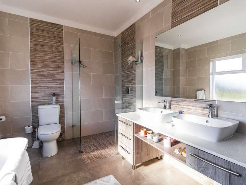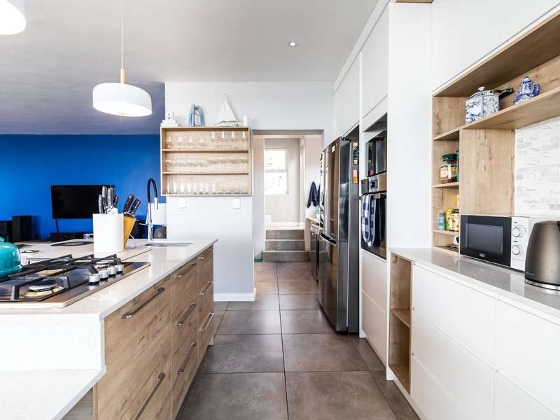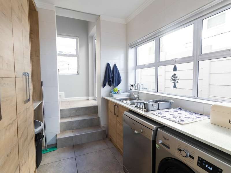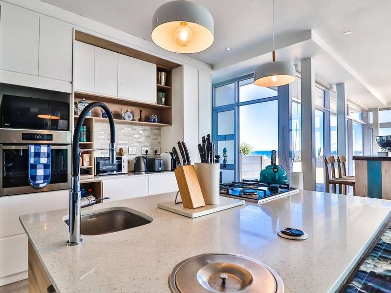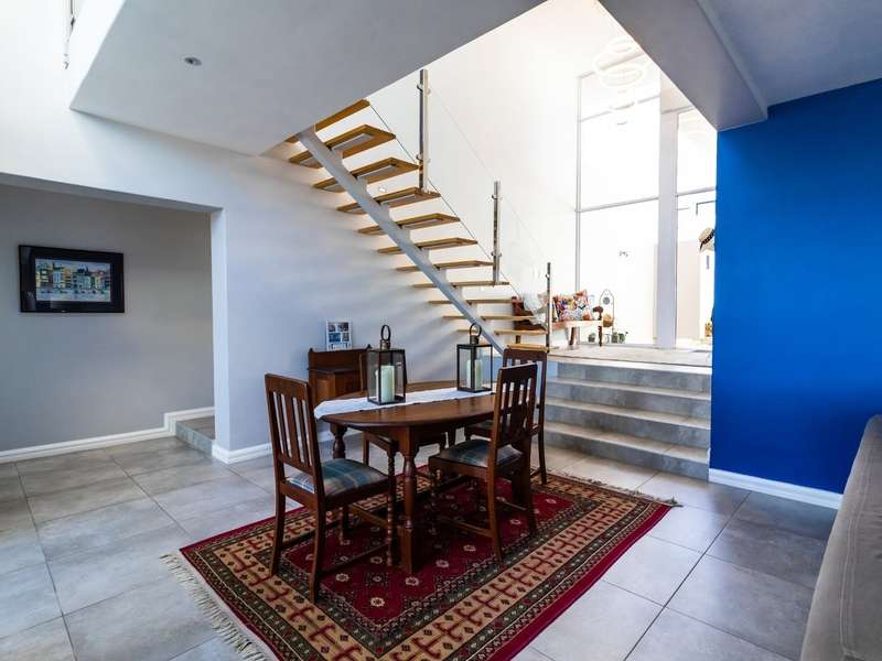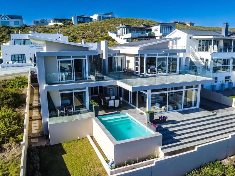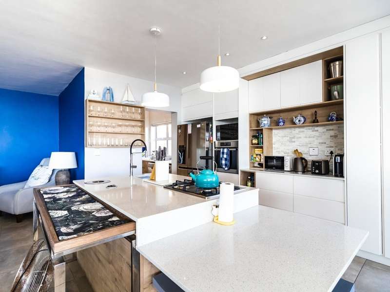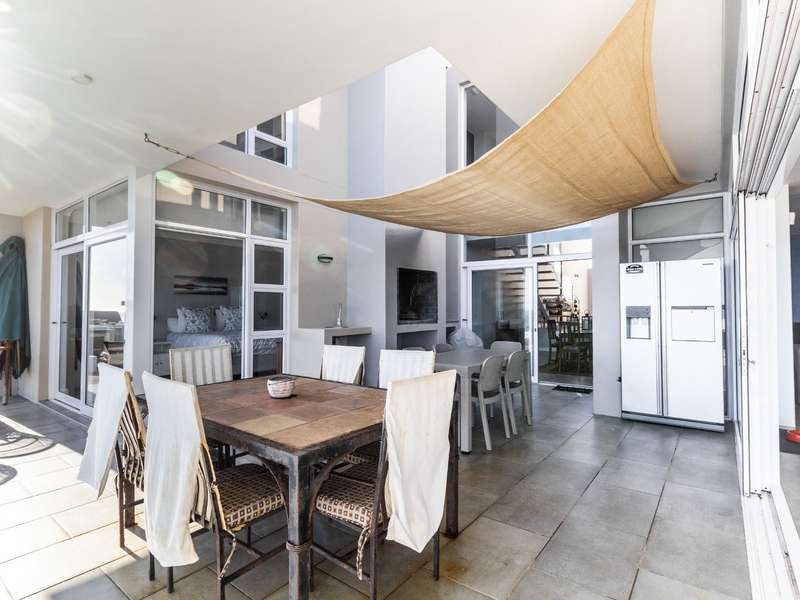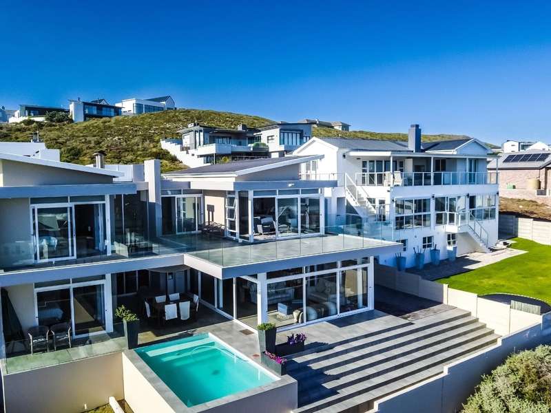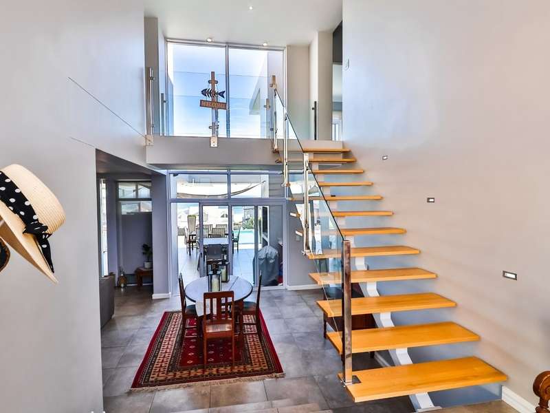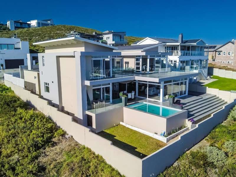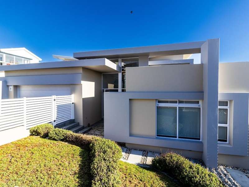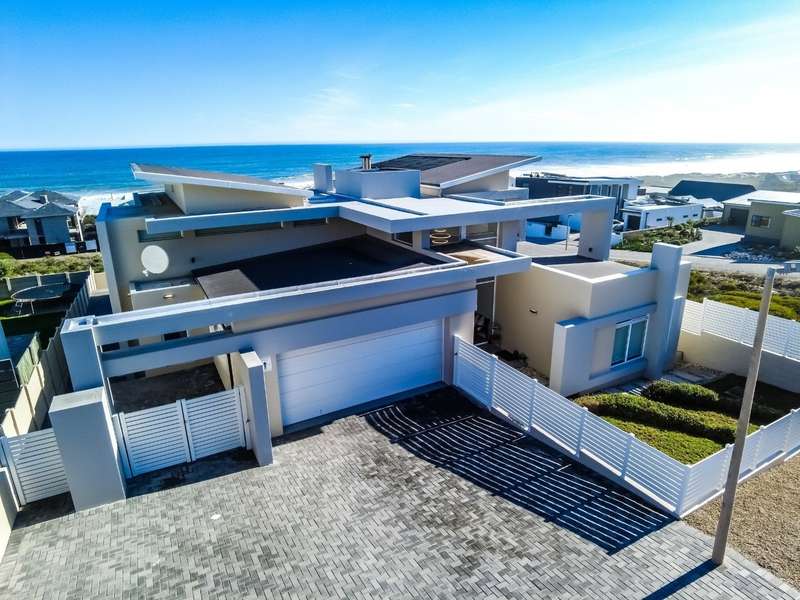 This breathtaking double-storey home captures sweeping, uninterrupted views across the Atlantic Ocean, including views of the iconic Table Mountain to the distant silhouette of Dassen Island from the upper level. Designed for seamless indoor-outdoor living, the open-plan lounge, dining, and kitchen areas spill effortlessly onto a spacious veranda, where a sparkling pool and built-in braai create the perfect setting for sun-drenched days and starlit evenings. Floor-to-ceiling sliding doors throughout the living spaces invite in the natural light and the spectacular scenery, while a stylish kitchen with a central island and separate scullery ensures everyday practicality and elegant design. Upstairs, the master bedroom is a serene en-suit retreat with panoramic ocean views, a vista that will remain untarnished, no matter future development. This sanctuary flows through to a second en-suite bedroom sharing in the majestic coastal outlook. All bedrooms are thoughtfully positioned for privacy, comfort and views. Architectural elegance and timeless finishes are harmoniously balanced with the raw beauty of the surrounding seascape, making this home a rare gem for those who appreciate luxury, space, and the unmatched serenity of nature.