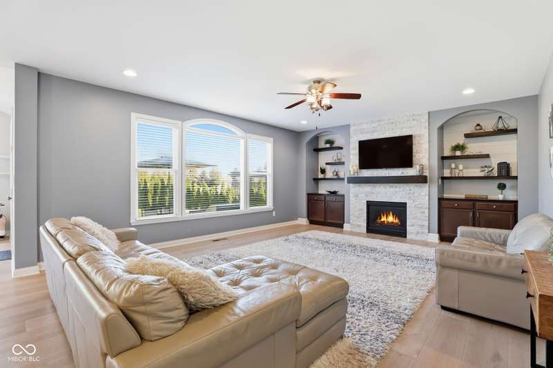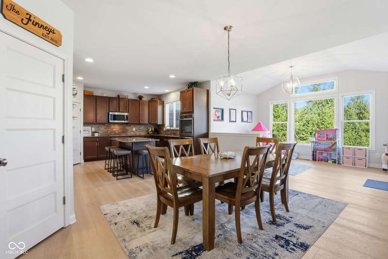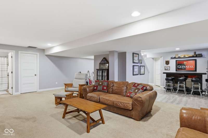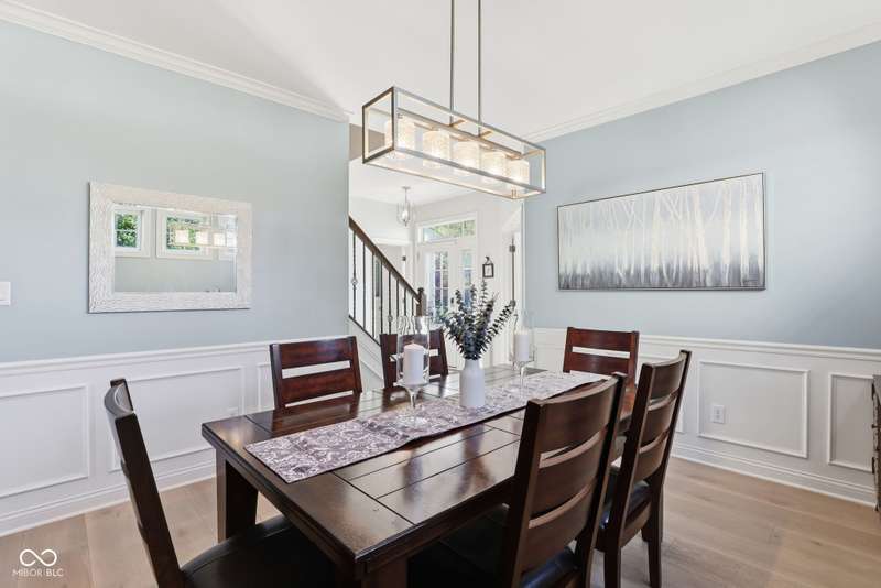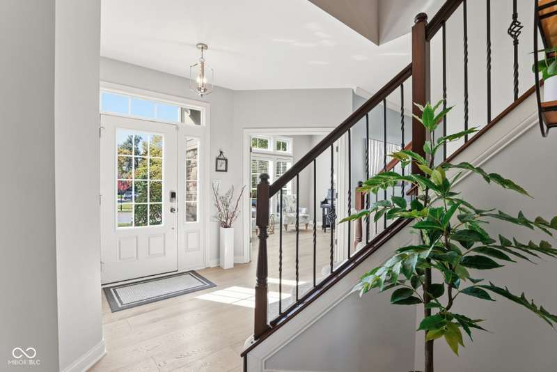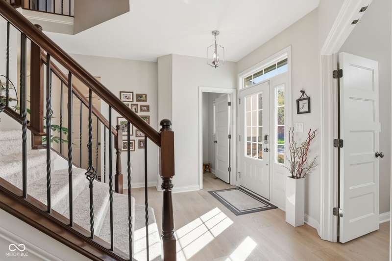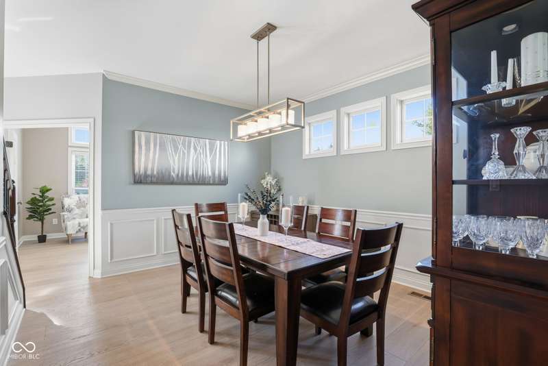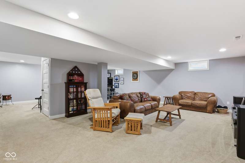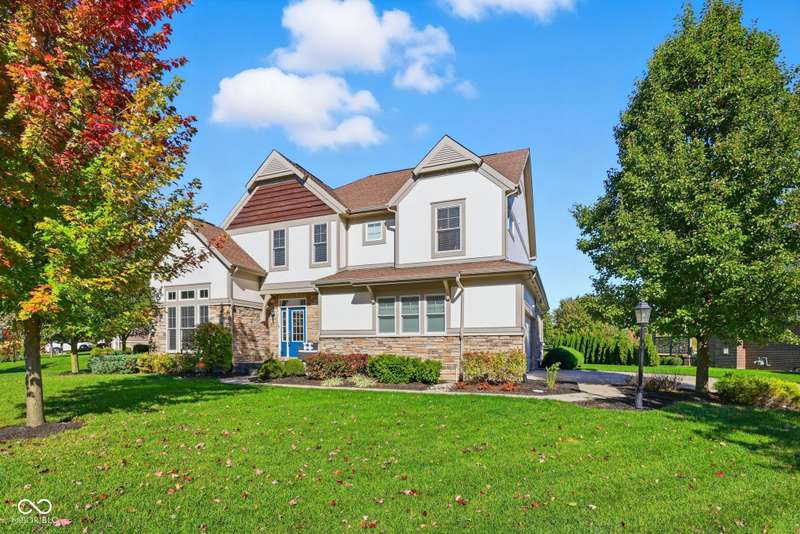 Welcome home to Thorpe Creek! 4 bedroom/3.5 bath home nestled at the beginning of a cul-de-sac w/a private lushly landscaped backyard! Offering over 4,500 sq ft, including a finished bsmt! Curb appeal that's on-point w/its inviting craftsmanship including a porch and stone all extending all around the home. Open the door to NEW engineered hardwood flrs & freshly painted! Truly move in ready! Charming foyer w/rod-iron baluster staircase a focal point of the home. Office tucked off the foyer w/double doors for privacy, hardwood flrs extending into this space. Dining rm w/crown molding, wainscoting, creating an elegant space, 3 transom windows for natural light! Hardwoods running seamlessly throughout the main floor making it a spacious open floorplan! Greatroom w/a cozy gas fireplace, flanked by custom built-ins and shelving. Wall of windows overlooking the expansive backyard & outdoor living space! Hearthroom & Kitchen w/an abundance of space, perfect for entertaining! Kitchen features trending 42" solid cabinetry, granite counters, backsplash, SS appliances (all included), DBL ovens, Walk-In pantry & an island that's sure to be the host of many gatherings! Step off the kitchen into the hearthroom w/vaulted ceilings, drenched in natural light with 3 walls of windows! Perfect area to cozy up w/your favorite book! Family friendly foyer features a great drop zone for backpacks, etc... Upstairs: Convenient laundry room w/cabinets and space for storage! 4 bedrooms, including 2 full baths. Owner's suite w/ensuite bath, luxury tile shower, soaking tub and comfort height dual sink vanity, generous sized WIC! Finished basement ftrs NEW carpet, a guest room, 3rd full bath, bar, family room, exercise room, and additional unfinished space for storage! This home is not lacking any storage! Step outside to your patio for grilling and chilling this Fall! Thorpe Creek offers amazing amenities including a meeting house for gatherings, pool, park, playground and walking trails!