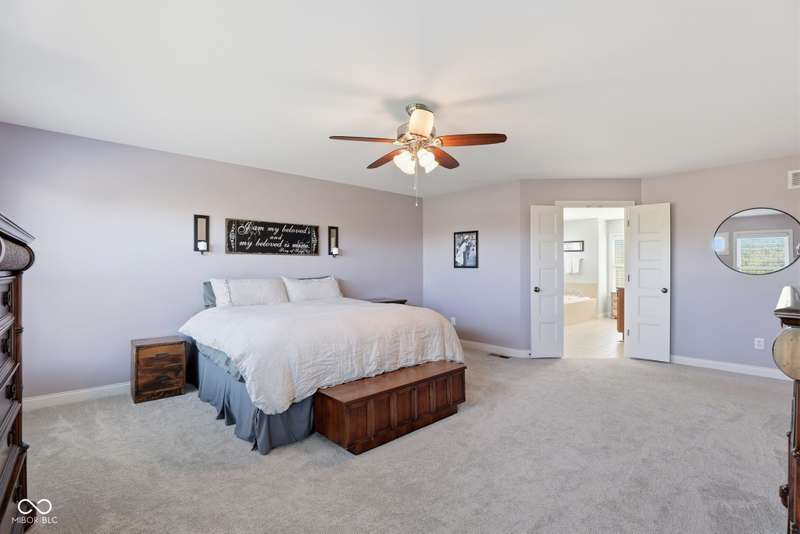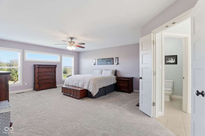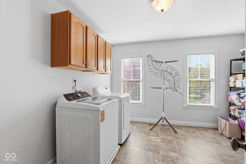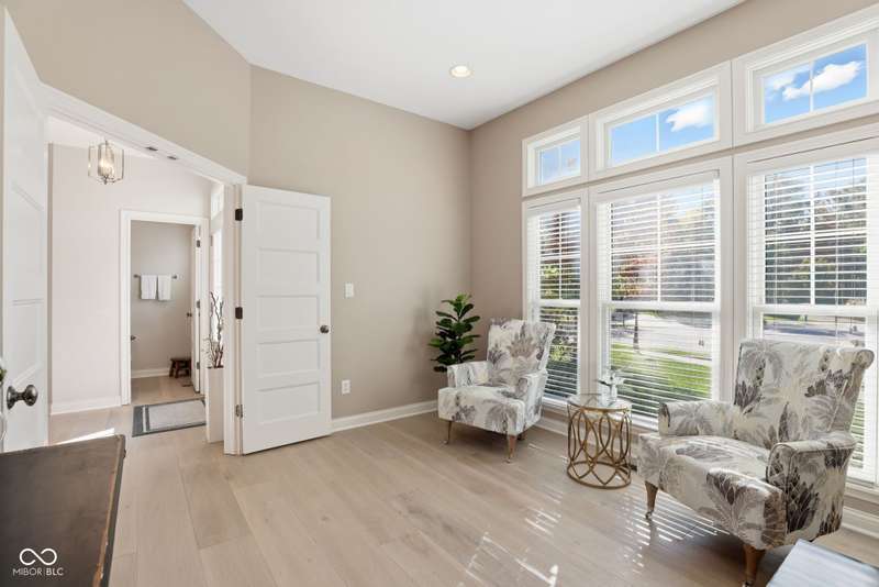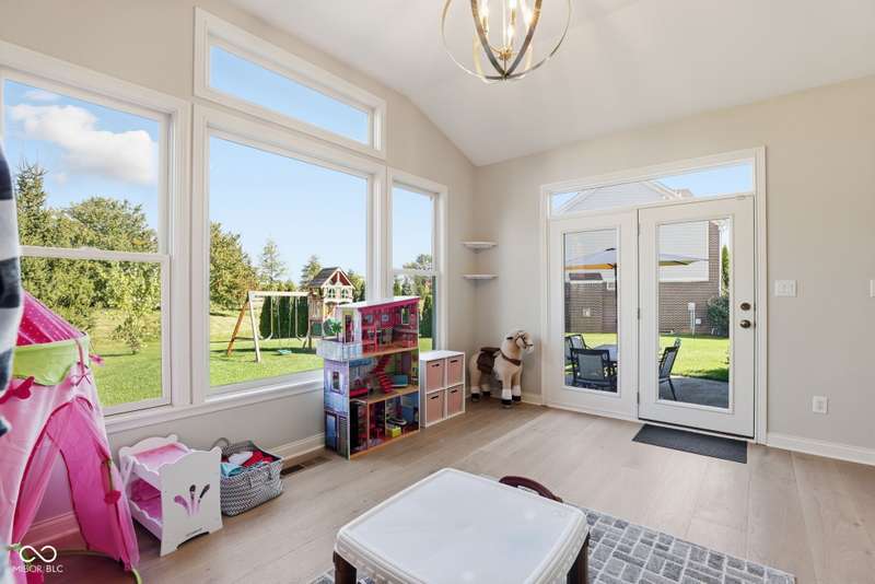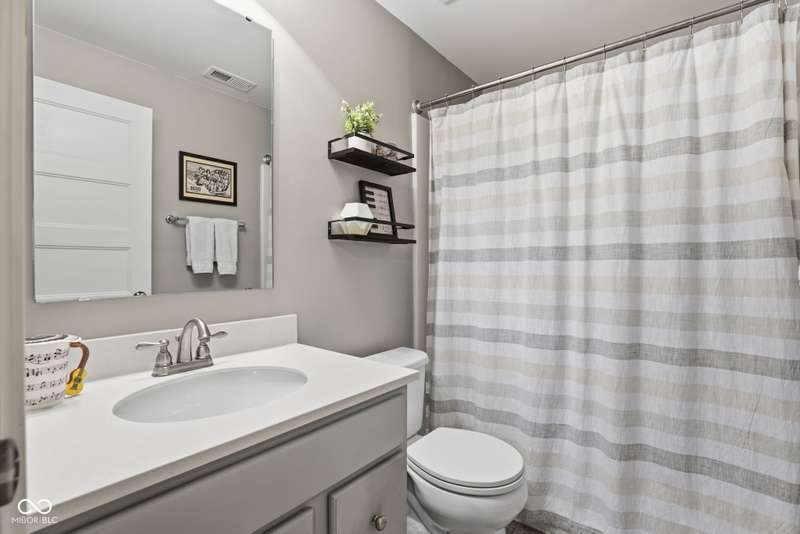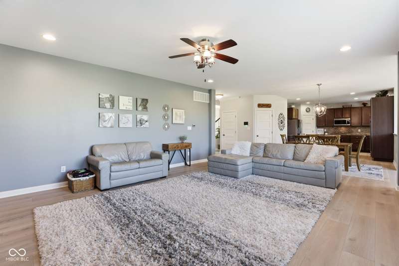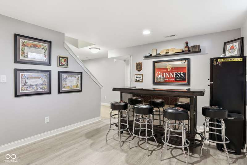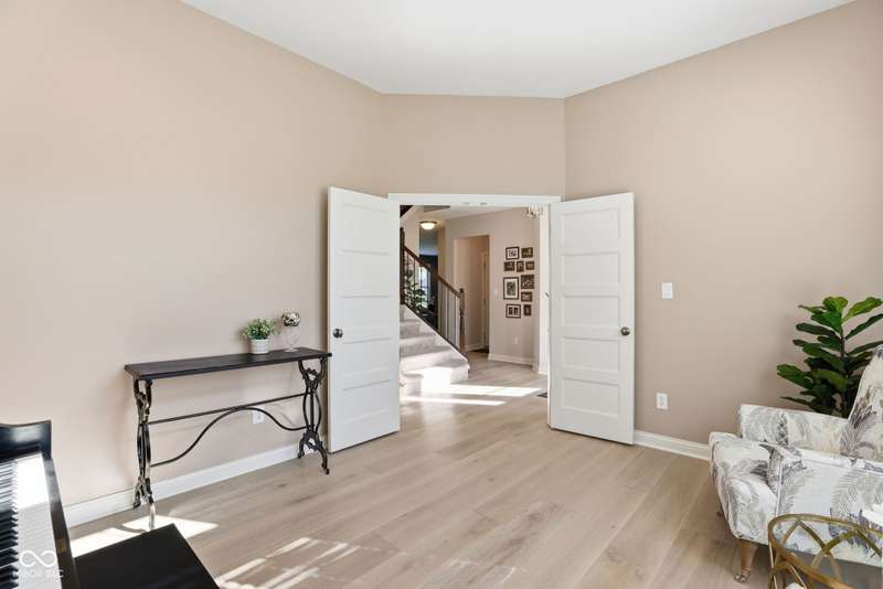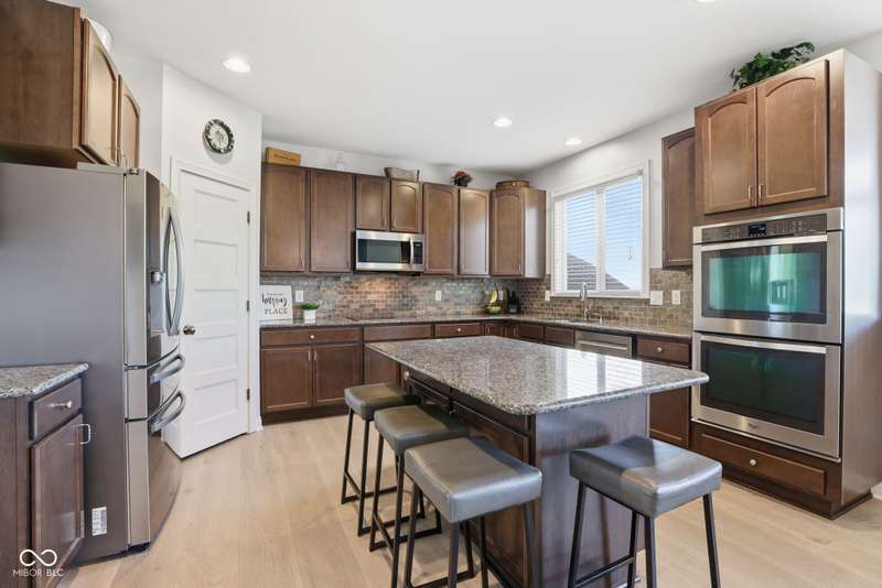 Welcome home to Thorpe Creek! 4 bedroom/3.5 bath home nestled at the beginning of a cul-de-sac w/a private lushly landscaped backyard! Offering over 4,500 sq ft, including a finished bsmt! Curb appeal that's on-point w/its inviting craftsmanship including a porch and stone all extending all around the home. Open the door to NEW engineered hardwood flrs & freshly painted! Truly move in ready! Charming foyer w/rod-iron baluster staircase a focal point of the home. Office tucked off the foyer w/double doors for privacy, hardwood flrs extending into this space. Dining rm w/crown molding, wainscoting, creating an elegant space, 3 transom windows for natural light! Hardwoods running seamlessly throughout the main floor making it a spacious open floorplan! Greatroom w/a cozy gas fireplace, flanked by custom built-ins and shelving. Wall of windows overlooking the expansive backyard & outdoor living space! Hearthroom & Kitchen w/an abundance of space, perfect for entertaining! Kitchen features trending 42" solid cabinetry, granite counters, backsplash, SS appliances (all included), DBL ovens, Walk-In pantry & an island that's sure to be the host of many gatherings! Step off the kitchen into the hearthroom w/vaulted ceilings, drenched in natural light with 3 walls of windows! Perfect area to cozy up w/your favorite book! Family friendly foyer features a great drop zone for backpacks, etc... Upstairs: Convenient laundry room w/cabinets and space for storage! 4 bedrooms, including 2 full baths. Owner's suite w/ensuite bath, luxury tile shower, soaking tub and comfort height dual sink vanity, generous sized WIC! Finished basement ftrs NEW carpet, a guest room, 3rd full bath, bar, family room, exercise room, and additional unfinished space for storage! This home is not lacking any storage! Step outside to your patio for grilling and chilling this Fall! Thorpe Creek offers amazing amenities including a meeting house for gatherings, pool, park, playground and walking trails!