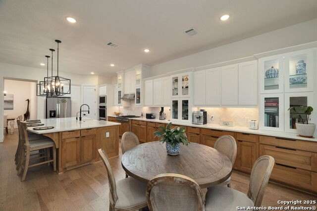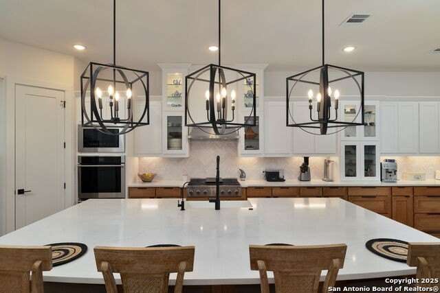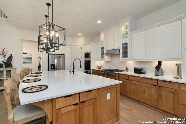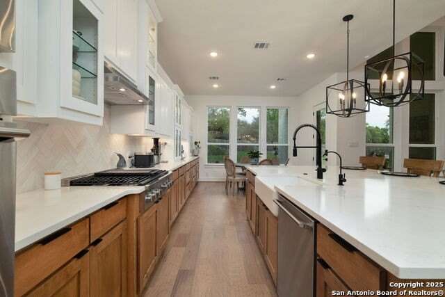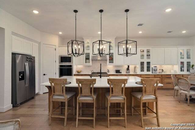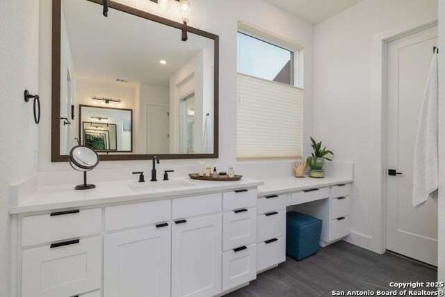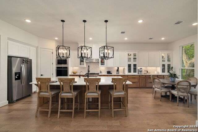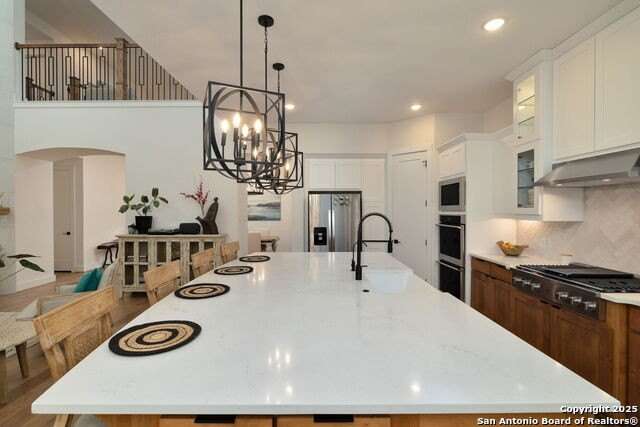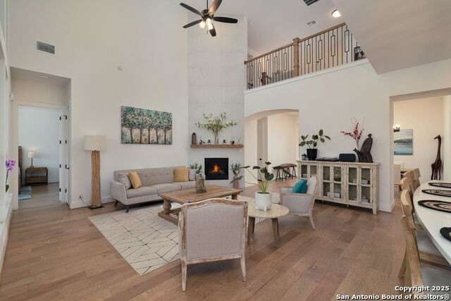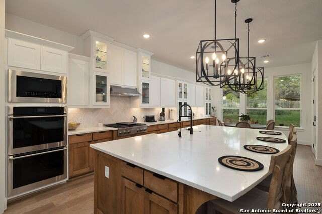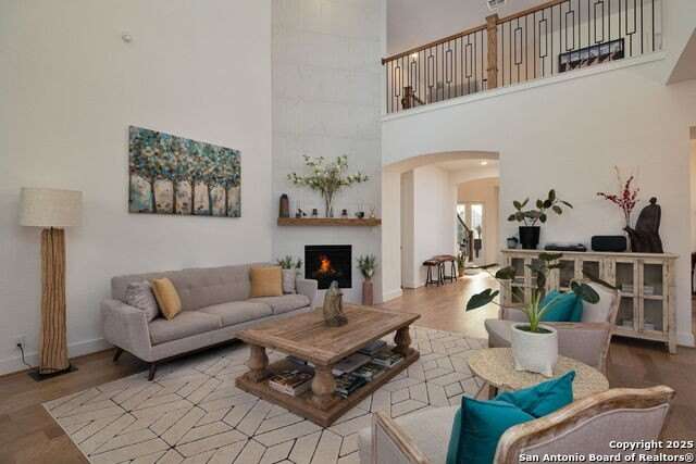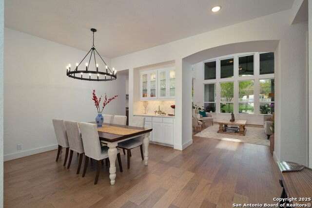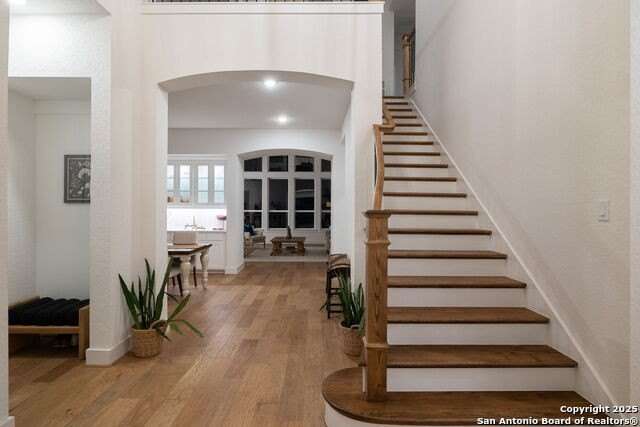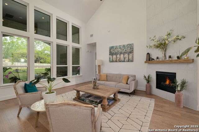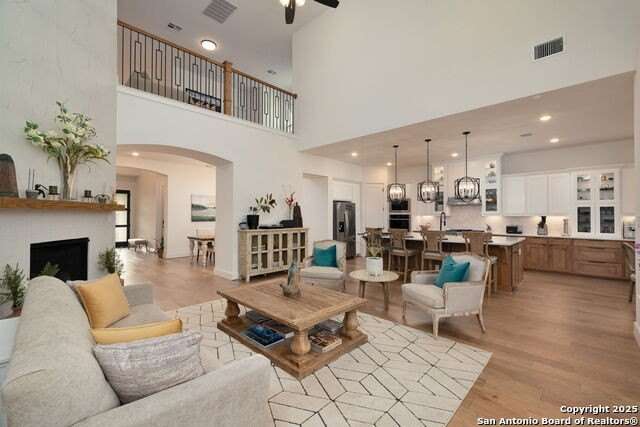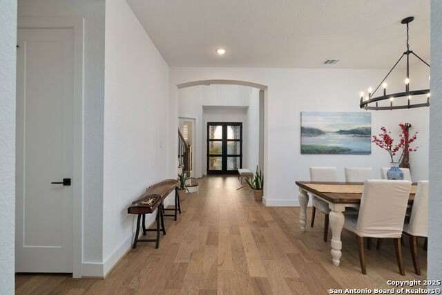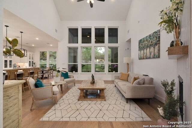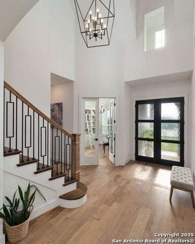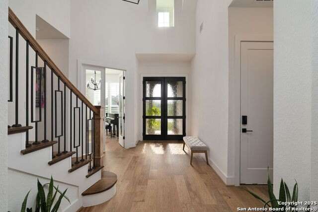 Welcome to this stunning 5-bedroom, 5.5-bath home, designed with your lifestyle in mind. Nestled on a spacious 0.67-acre home site in a serene cul-de-sac, this property offers both luxury and functionality. The open floorplan is flooded with natural light, creating an inviting atmosphere that flows seamlessly from room to room. Beautiful engineered wood floors grace most of the first floor, adding warmth and elegance throughout. At the heart of the home is the open-concept culinary kitchen, featuring an oversized white quartz island-perfect for gathering and entertaining. This space flows effortlessly into the expansive family room with soaring 19-foot ceilings. The large windows flood the room with natural light, highlighting the beautiful views and creating a bright, airy ambiance. Upstairs, you'll find a spacious game room/family room and three additional secondary bedrooms. One of the bedrooms on the second floor offers a unique ensuite with a private sitting area, ideal for in-laws or guests. Each of the five generously sized bedrooms offers ultimate privacy and comfort. The home also boasts a three-car garage with ample additional storage space, ensuring organization is never a problem. For your entertainment needs, there is a downstairs media room. A separate office space that provides the ideal setting for working from home. Whether you're entertaining guests or enjoying quiet family moments, this home offers the perfect balance of elegance and practicality. Don't miss the opportunity to make this exceptional property your own-schedule your private showing today!
