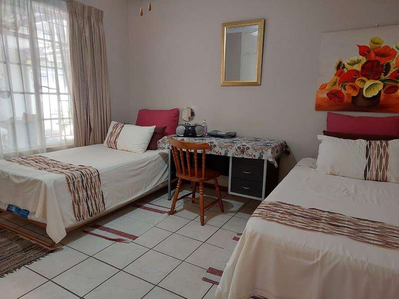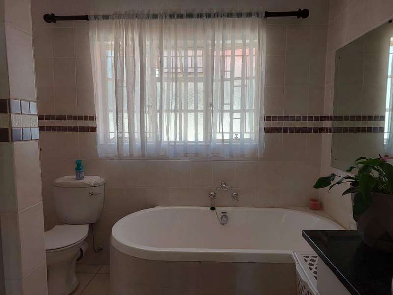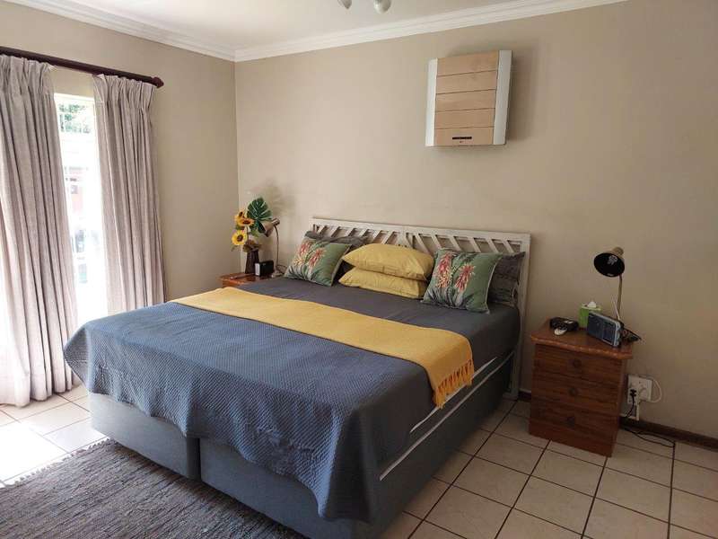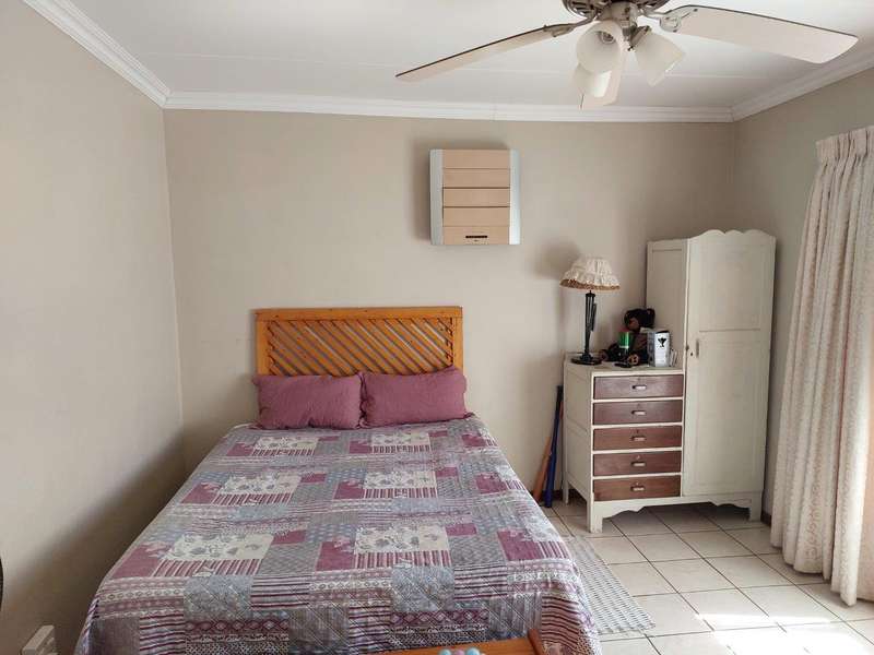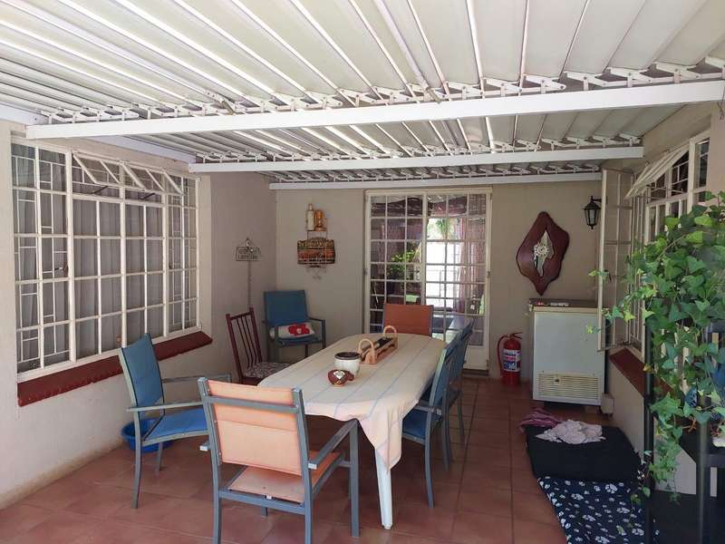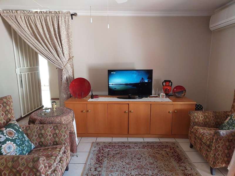 Lovely large family home in Bela Bela The house has four spacious bedrooms with built-in cupboards. The main bedroom has an ensuite bathroom with bath, shower, basin and toilet. The second bathroom also has a bath, shower, basin and toilet. The passage has built-on cupboards and a large walk-in pantry or linen storeroom. Three rooms have air conditioning in. The lounge and kitchen are connected with an open arch that increases the living space. The study can be used as the dining area right next to the kitchen or keep the room as a study and utilize that other lounge that has space for a dining table and lounge set. Two verandahs and more than enough space for a tea nook in the garden. One bedroom flatlet in the garden with a kitchen and bathroom produces an income or let grandma stay there. The domestic workers have access to an outside flush toilet. The double garage has built in cupboards, a zinc and laundry with lots of space. Load shedding is countered with a generator that is connected to a changeover switch in a lockable cage. Additional vehicles are parked under the three carports. Large lawn in the backyard and a beautiful garden in the front of the house. The house is well maintained and has no work needed to it. The house is tiled and has carpets in the lounge/dining room. There are two storerooms on the outside for the handyman of woodworker.