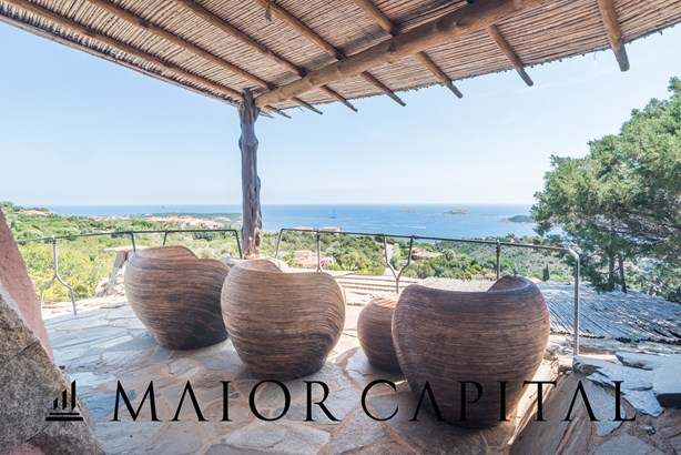 Located in a hillside position in Pantogia, Porto Cervo, with an enchanting sea view of the Pevero bay, we offer for sale a villa, an undisputed masterpiece of the well-known architect Savin Couelle.