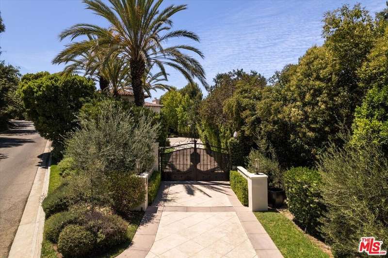 Set within the coveted guard-gated enclave of Bella Vista Estates, just steps from Beverly Park North, this Mediterranean-inspired estate offers 7,400 square feet of refined luxury on more than an acre of pristine grounds. Designed to capture sweeping canyon and mountain views from nearly every room, the residence blends timeless European craftsmanship with modern sophistication. A dramatic two-story foyer introduces elegant formal living and dining rooms, a chef's kitchen with top-tier appliances and breakfast nook, and an expansive great room with a state-of-the-art screening area. A mahogany-paneled study provides a workspace of rare elegance, while imported marble, French oak floors, and limestone accents enrich the home's interiors. The primary suite serves as a secluded retreat, complete with dual walk-in closets, a spa-inspired bath, and a limestone terrace overlooking manicured gardens. Outdoors, a resort-like setting unfolds with a full outdoor kitchen and wood-burning oven, a flat lawn, and a pool and spa embraced by lush landscaping. With its gated drive, exceptional privacy, and seamless flow between indoor and outdoor living, this Bella Vista estate embodies the pinnacle of Beverly Hills luxury.
