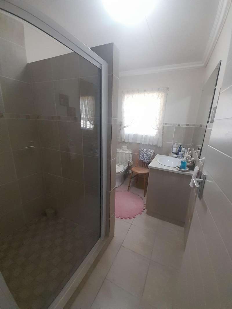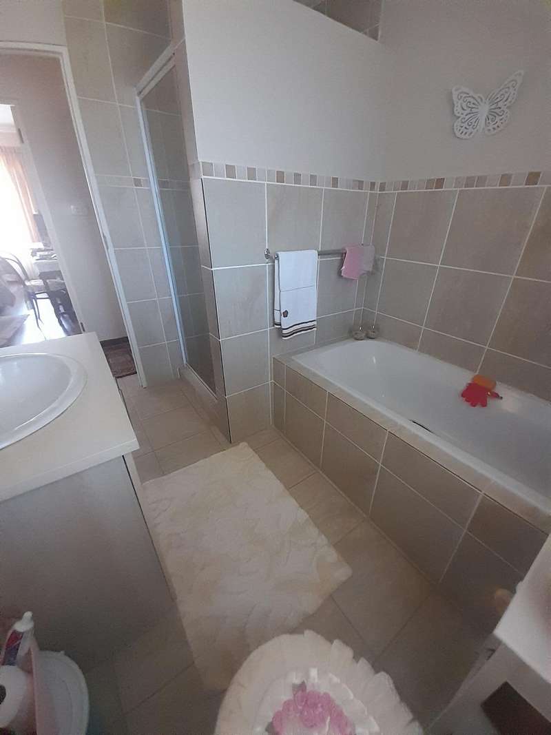 Besides being a lovely, very well maintained home, the fact the home is a few years old means you have a beautiful established garden and lawn. The patio is enclosed with glass and has the built in braai. From here the home opens into the lounge and dining room. Separate kitchen with place for all appliances. Short passage to the 2 family bedrooms and full bathroom. Door into main bedroom with its en-suite bathroom. Spacious bedrooms and bathrooms. Door directly from dining room into the double garage with remote doors. Laundry facilities in garage. Entrance to property from 2 roads so great for parking. This house is impeccably neat and well maintained. A pleasure to show this home to its potential new owner.