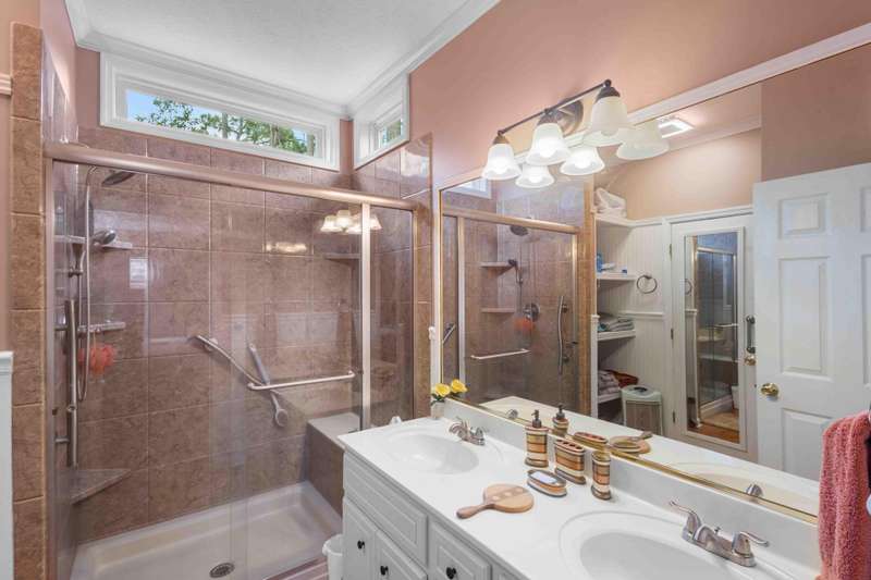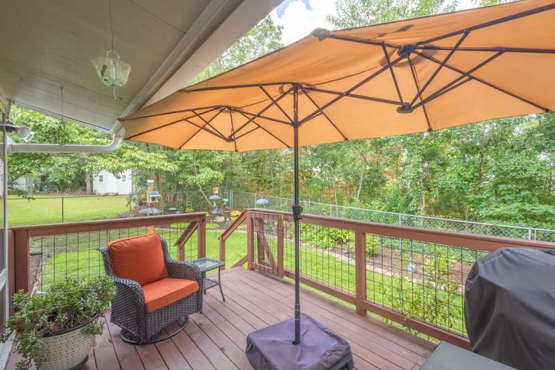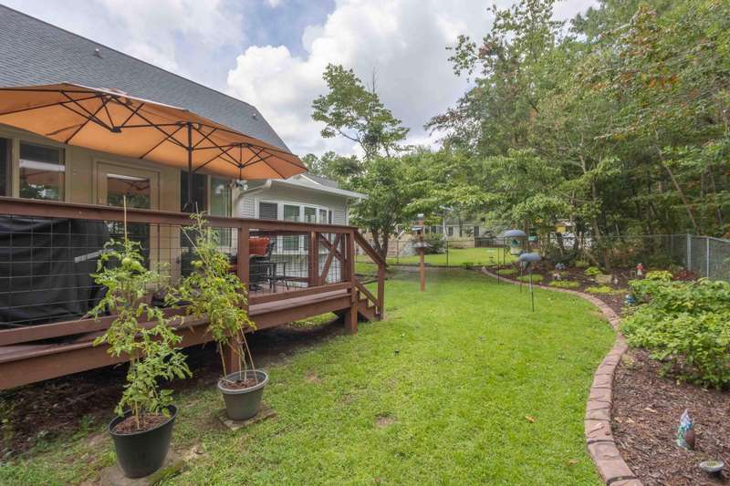 This spacious 2,334 square foot home with many updates is move-in ready. Located in Sandstone, a quiet neighborhood convenient to all that the Southside of Aiken has to offer. Upon entering the home you will notice the cathedral ceiling and newly painted interior. Seven new windows have been installed recently as well. The greatroom includes plenty of natural lighting and ceiling lights in addition to a gas fireplace. The owner's suite with trey ceiling is conveniently located on the main level with new faucets in the full bath. Hardwood and tile floors gleam throughout the main level. Enjoy cooking in this eat-in kitchen with granite countertops and all new appliances. All applicances including a new washer and dryer stay except the refrigerator located in the kitchen. (There is a refrigerator in the garage which will stay.) Also, for more formal dining enjoy the separate dining room with chair railing located off the greatroom. In addition, on the main level is a half bath and a spacious sunroom with abundant windows including a bay window with views of the fenced-in backyard. The sunroom is currently being used as office space. Ample sized laundry room is located on the main level as well. On the second level you will find two additional bedrooms, a full bath, and a bonus room that can be used as a large fourth bedroom/office or craft space. Downstairs off the sunroom is a beautiful new deck which is partially covered. With 12 pine trees recently removed, there is plenty of space and sunlight for the new plantings on the back, side, and front of the home. The sprinkler system has recently been refurbished with all new heads replaced, 5 new pipes, and new timer installed. Front lawn has been enlarged with new sod installed beside the driveway. Curbing/edging for flower gardens has recently been installed. Enjoy the new driveway which has recently been replaced. Two car garage.