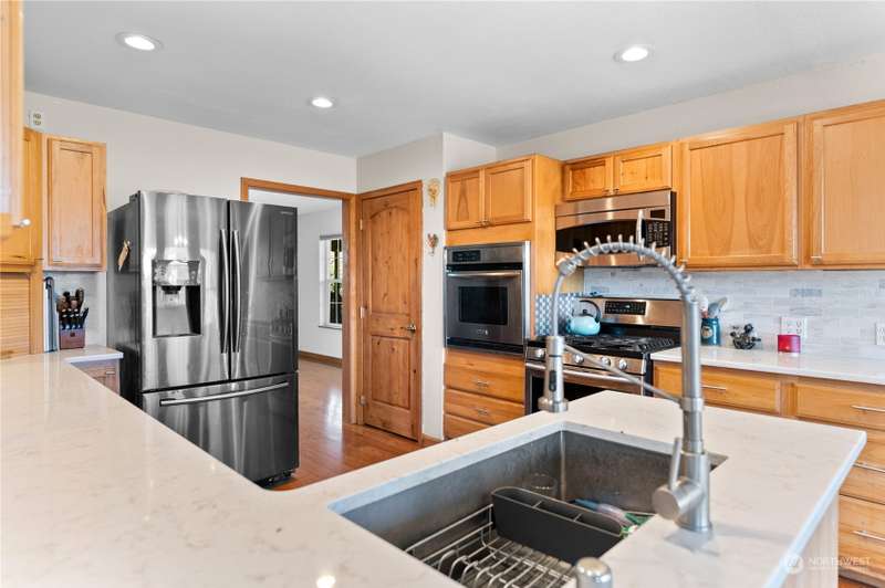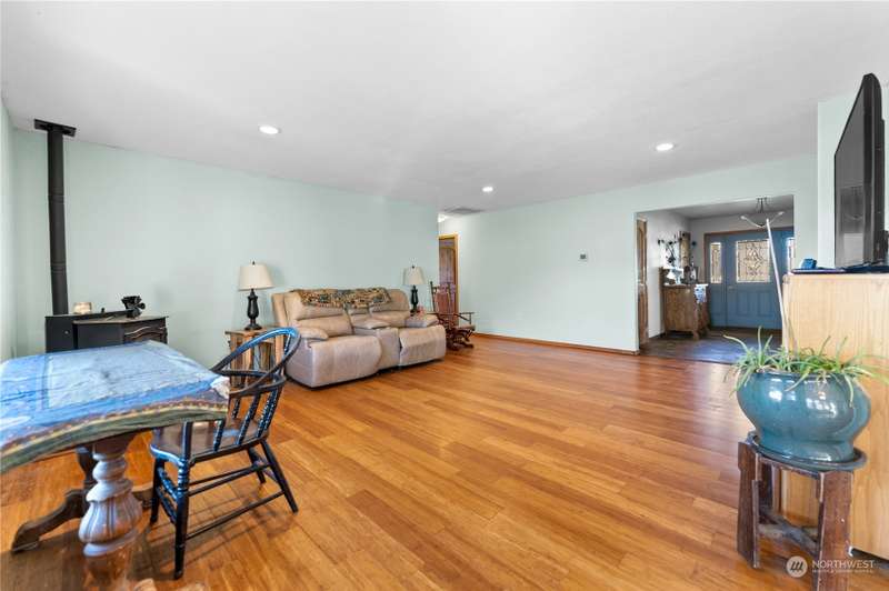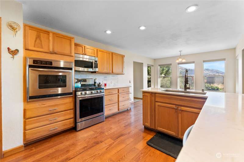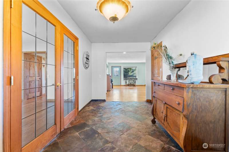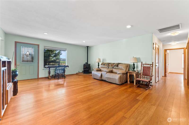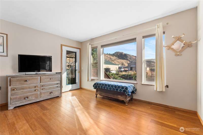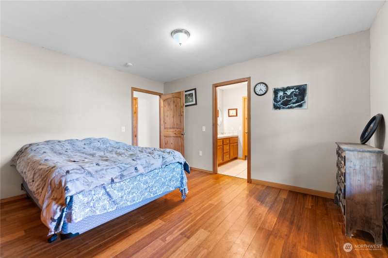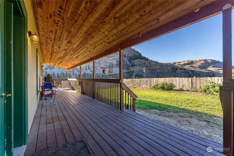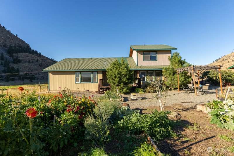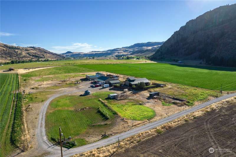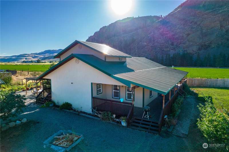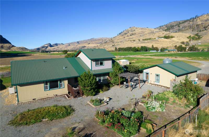 Stunning views and dramatic rock formations surround this welcoming farmhouse. 2 parcels, 6+ irrigated acres. Expansive covered deck welcomes you to a slate entry w/dining room, open living room adjacent to bright, updated kitchen. Large laundry w/storage galore serves as perfect mud room from backdoor access. Lovely primary bedroom w/ensuite, double vanity, walk in closet, sunken tub & shower. Generous main floor footprint also includes two extra bedrooms w/Jack and Jill full bath. Upper level is location of second private primary bedroom w/ensuite bathroom. The uses for this property are boundless. Oversized garages, chicken coops, barns with 4 stalls, large shop w/possible additional living space. This property is full of potential!