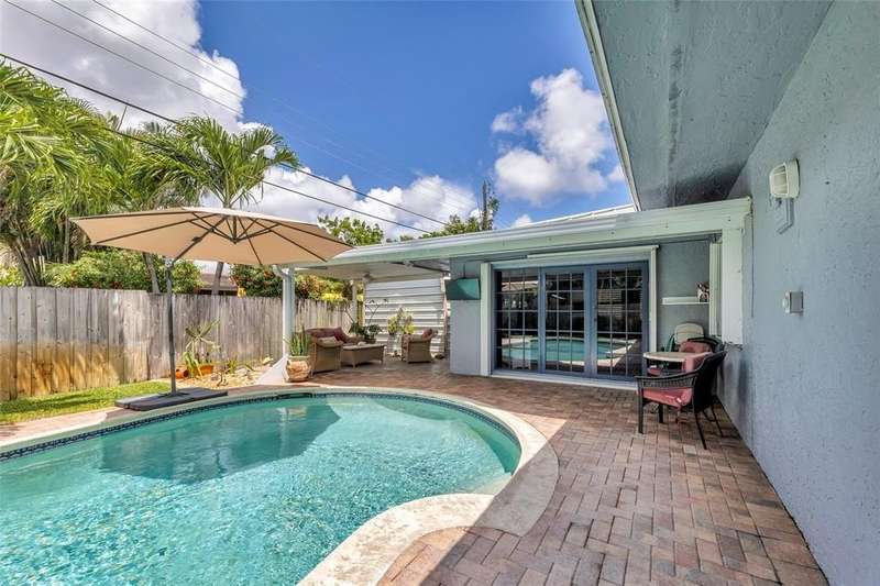 Exceptional value in Central Wilton Manors! Short walk to Wilton Drive, Rosie's, steps to Publix, CVS, dining, and nightlife, PLUS just 2 miles to Fort Lauderdale beach. This 3BR, 2.5BA home features a 2018 standing seam metal roof, impact front door, and full accordion/Bahama shutters for storm protection. This home is MUCH LARGER than it appears from the street! Enjoy an open layout with a HUGE family room (no step-downs) and French doors to a private pool. Includes indoor laundry, generous closets, 1-car garage with impact door, and oversized carport with 11'4" clearance—perfect for your RV or boat, secured by custom aluminum gates. A rare find with lifestyle, location, and long-term value for Airbnb scenario as well. Sellers will consider all offers --house ready for new owner!
