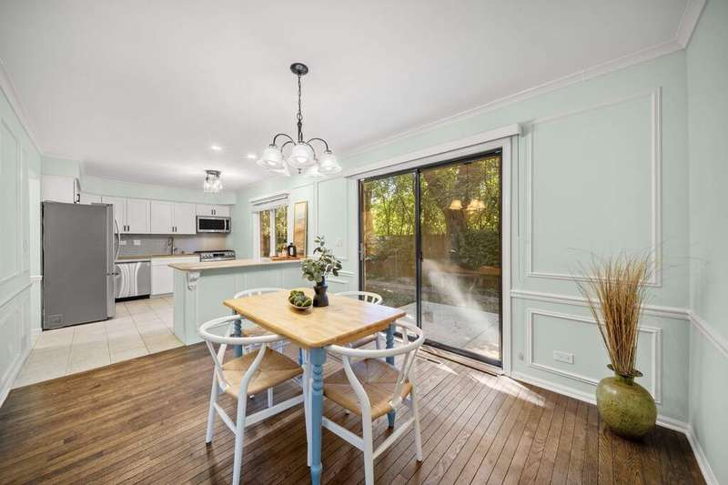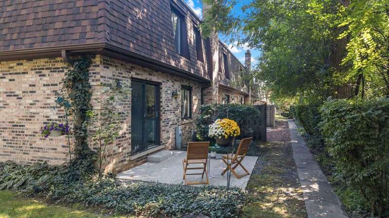 Welcome home to this spacious end-unit townhome in the heart of Glenview, perfectly blending comfort, convenience, and style. The outdoor entrance with heated pathway welcomes you into the sun-drenched first floor features hardwood flooring throughout the generous living and dining areas, while the updated kitchen offers crisp white cabinetry, a glass tile backsplash, neutral granite countertops, and a full suite of newer stainless steel appliances. A main floor half bath, laundry, and direct access to the attached one-car garage add everyday ease. Step outside to your private patio, beautifully landscaped and ideal for outdoor dining or entertaining. Upstairs, the primary suite includes a private en suite bath, while two additional bedrooms share a full hall bath with soaking tub. The finished lower level expands your living space with a built-in bar and a large mechanical/storage room. An attached 1 car garage adds convenience, while 2 assigned parking spots ensure ease of parking for any additional cars and guests. Enjoy peace of mind with major updates completed in 2022, including furnace, A/C, humidifier, sump with backup, smart thermostat, security system, washer/dryer, and kitchen appliance package. And a brand new roof was installed for the entire complex. All that's left is to add your own decorator's touch and make it your own.