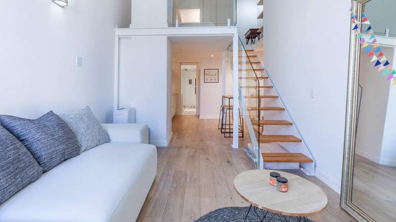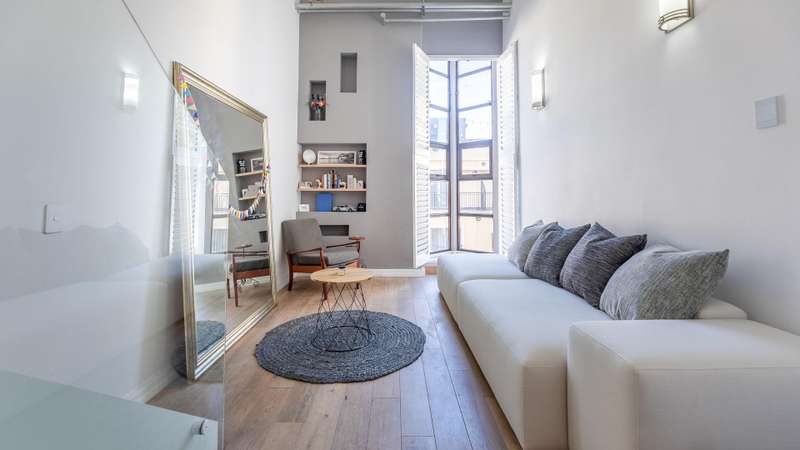 FIRST TIME ON SHOW. VIEWINGS BY APPOINTMENT ONLY. Sleek 1 Bedroom loft apartment for sale. Perched in the heart of Cape Town?ÇÖs vibrant city centre, this modern Manhattan-style one-bedroom loft apartment in the iconic Mutual Heights building masterfully blends chic aesthetics with sleek, minimalist design. The apartment exudes urban sophistication, featuring soaring double-volume ceilings and a floor to ceiling window in the living area, providing natural light and views of the majestic Table Mountain. The open-plan layout is thoughtfully configured: a stylish living area flows effortlessly into a well equipped kitchen offering minimalist cabinetry. Cleverly combining crisp white finishes with warm wood accents, this Manhattan-style loft apartment exudes both elegance and spatial ingenuity. The thoughtful interplay of white walls and quality wooden floors throughout creates a sense of openness and calm, subtly enhancing the apartment's generous double-volume proportions. Another standout feature of this property is the beautifully designed wall-mounted wooden wine rack, cleverly integrated beneath the staircase. Both functional and a striking design statement. The designer bathroom is a seamless blend of modern luxury and intelligent design. Styled with clean, contemporary lines and premium finishes, the space is both elegant and highly functional. Upstairs, the mezzanine-level bedroom overlooks the living space below, offering privacy without compromising the airy, open feel. The walk-in-closet's use of mirrors and soft finishes enhances the sense of space, while the layout ensures everything has it's place. As a heritage-listed Art Deco masterpiece, Mutual Heights offers residents 24-hour security, concierge services, and access to a private gym. The parking bay is situated in The Adderley affords the residents usage of the luxury pool and deck. Just steps from galleries, trendy cafes, and Cape Town?ÇÖs cultural landmarks, this loft is ideal for discerning professionals or creatives seeking a cosmopolitan lifestyle in a landmark setting ?Çö with the drama of Table Mountain always in view.