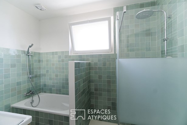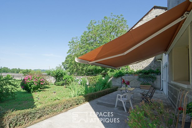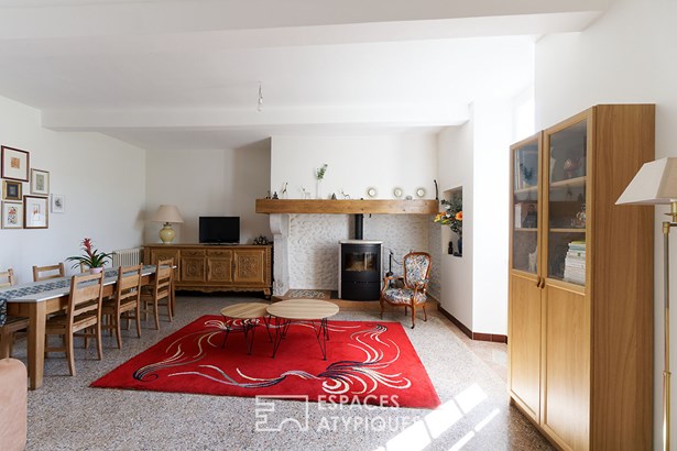 The house offers pleasant and bright volumes, with a warm living space where the wood-burning stove sits alongside a large independent kitchen. A ground-floor bedroom, an office, as well as a bathroom and a shower room bring comfort and functionality to this level. Upstairs, four additional bedrooms and a toilet offer comfort and tranquility.