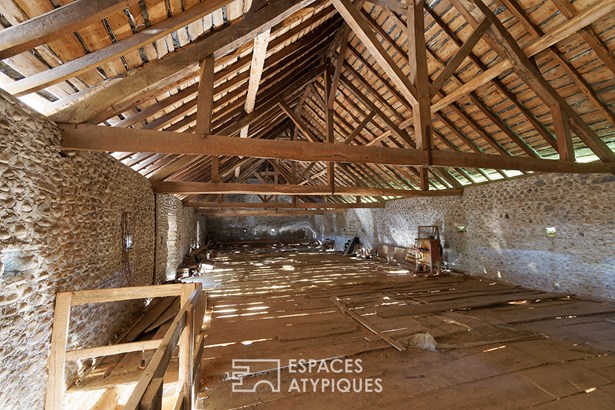 Located in a quiet environment, this beautiful pebble property dating from 1844 offers approximately 195 sqm of living space, complemented by an adjoining barn of over 350 sqm, which can be fully converted